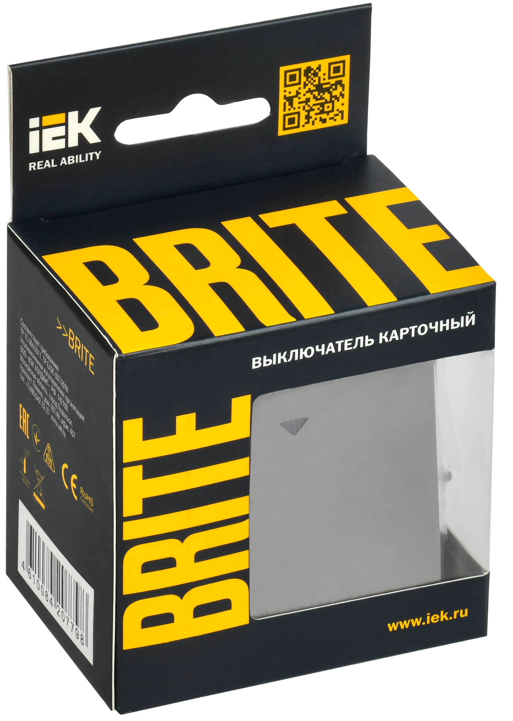 BRITE Выключатель карточный 30А ВС10-1-8-БрС сталь IEK