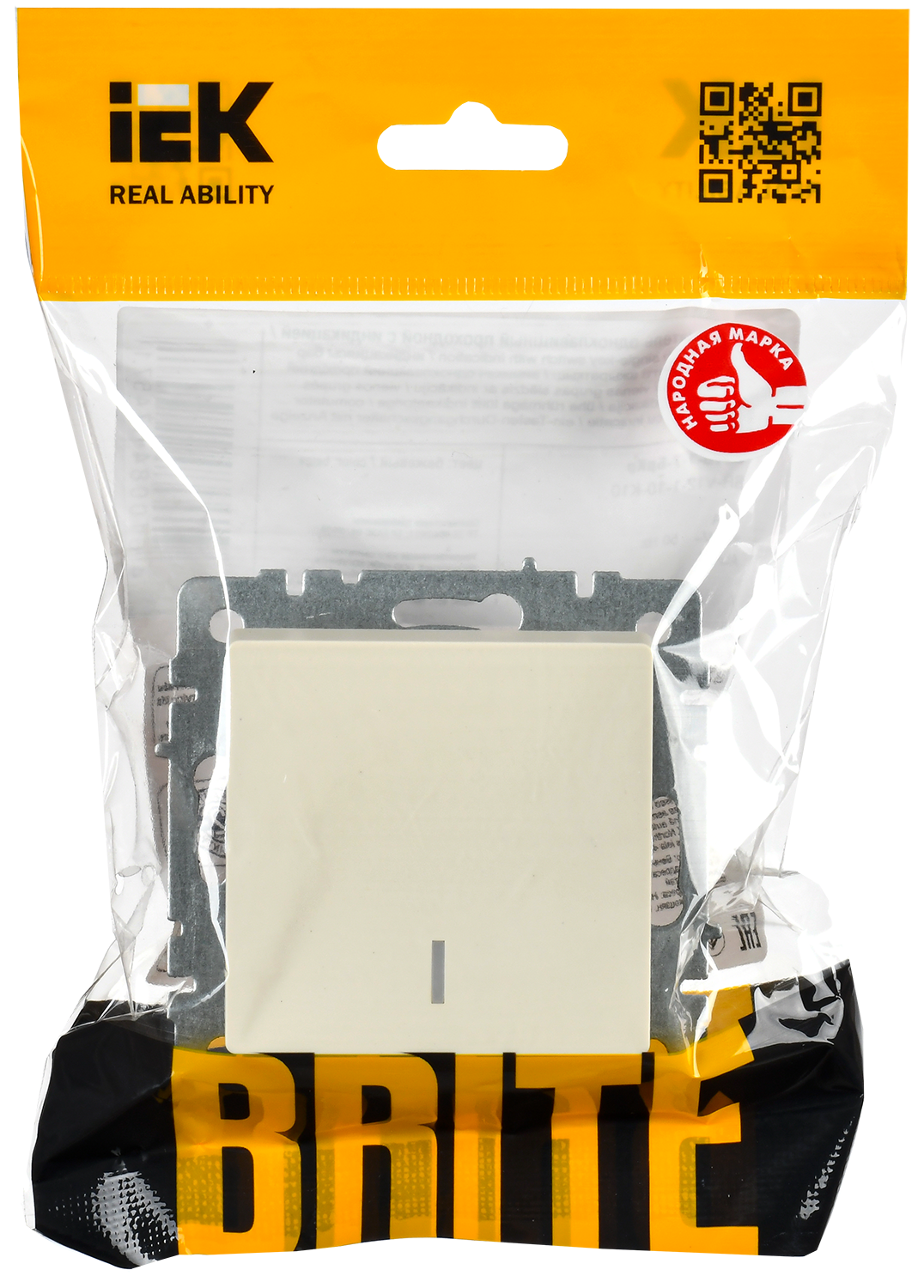 BRITE Выключатель 1-клавишный проходной с индикацией 10А ВС10-1-7-БрКр бежевый IEK