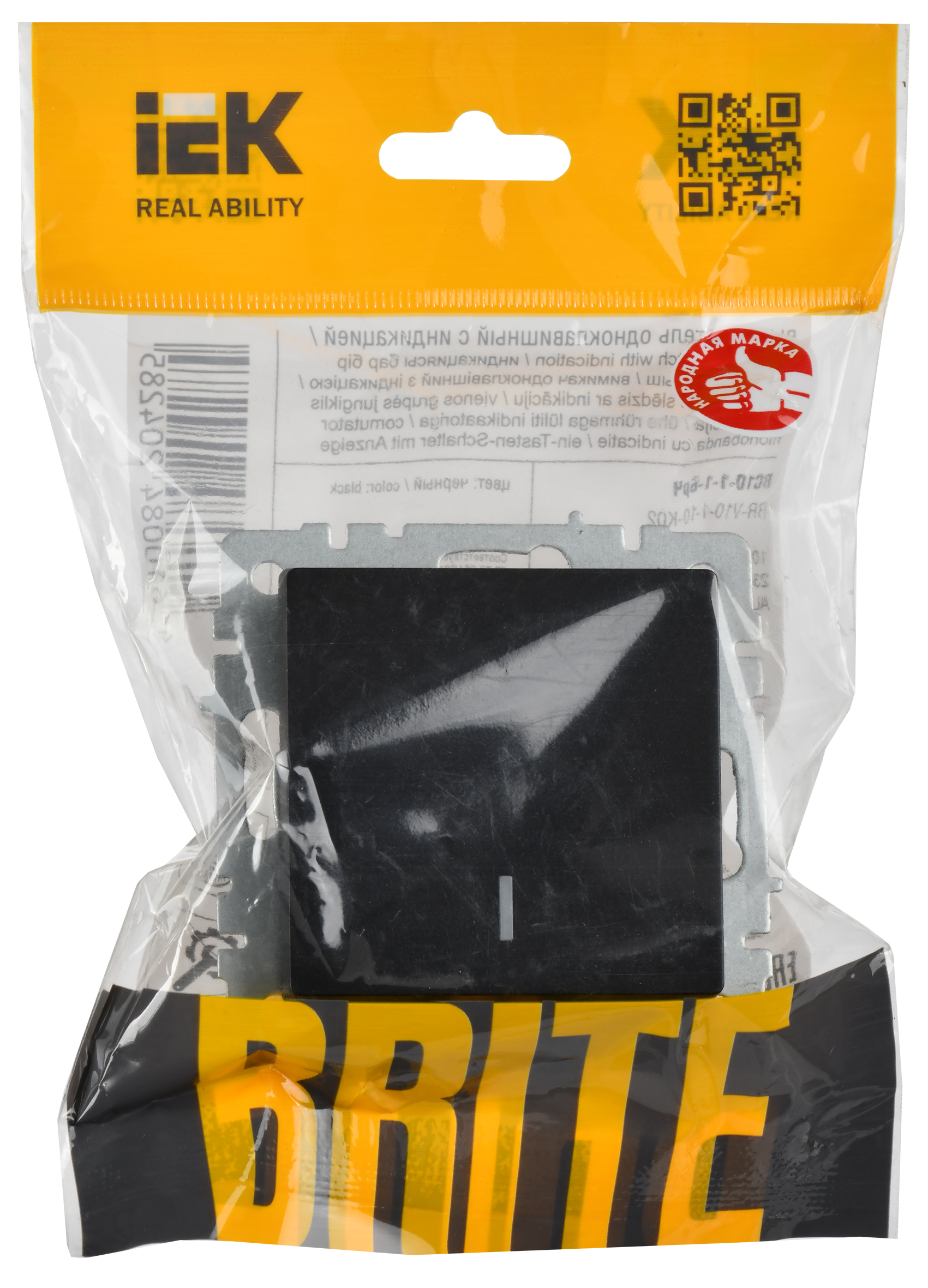 BRITE Выключатель 1-клавишный с индикацией 10А ВС10-1-1-БрЧ черный IEK