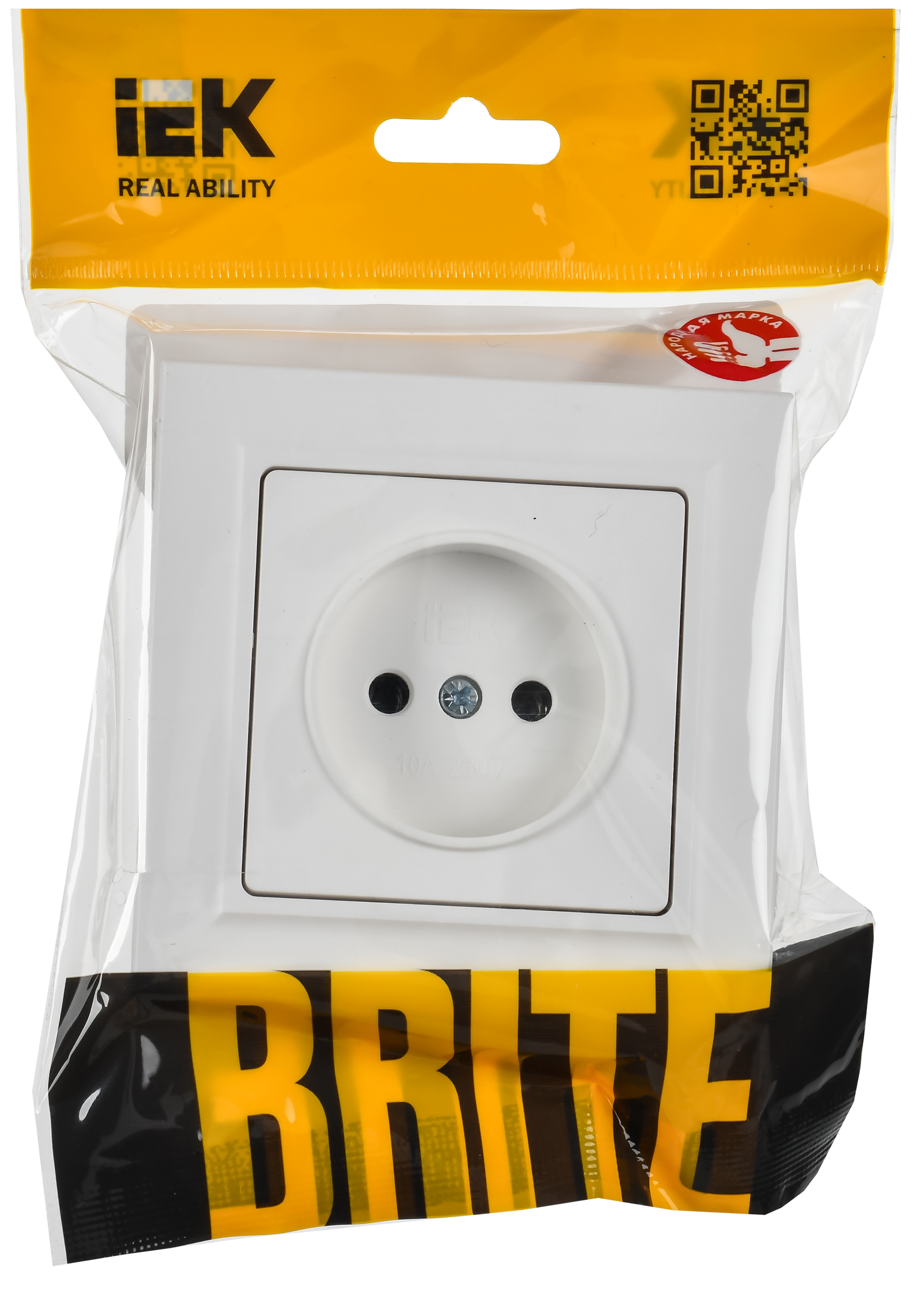 BRITE Розетка 1-местная без заземления без защитных шторок 10А в сборе РСР10-1-0-БрАБ арктический белый IEK