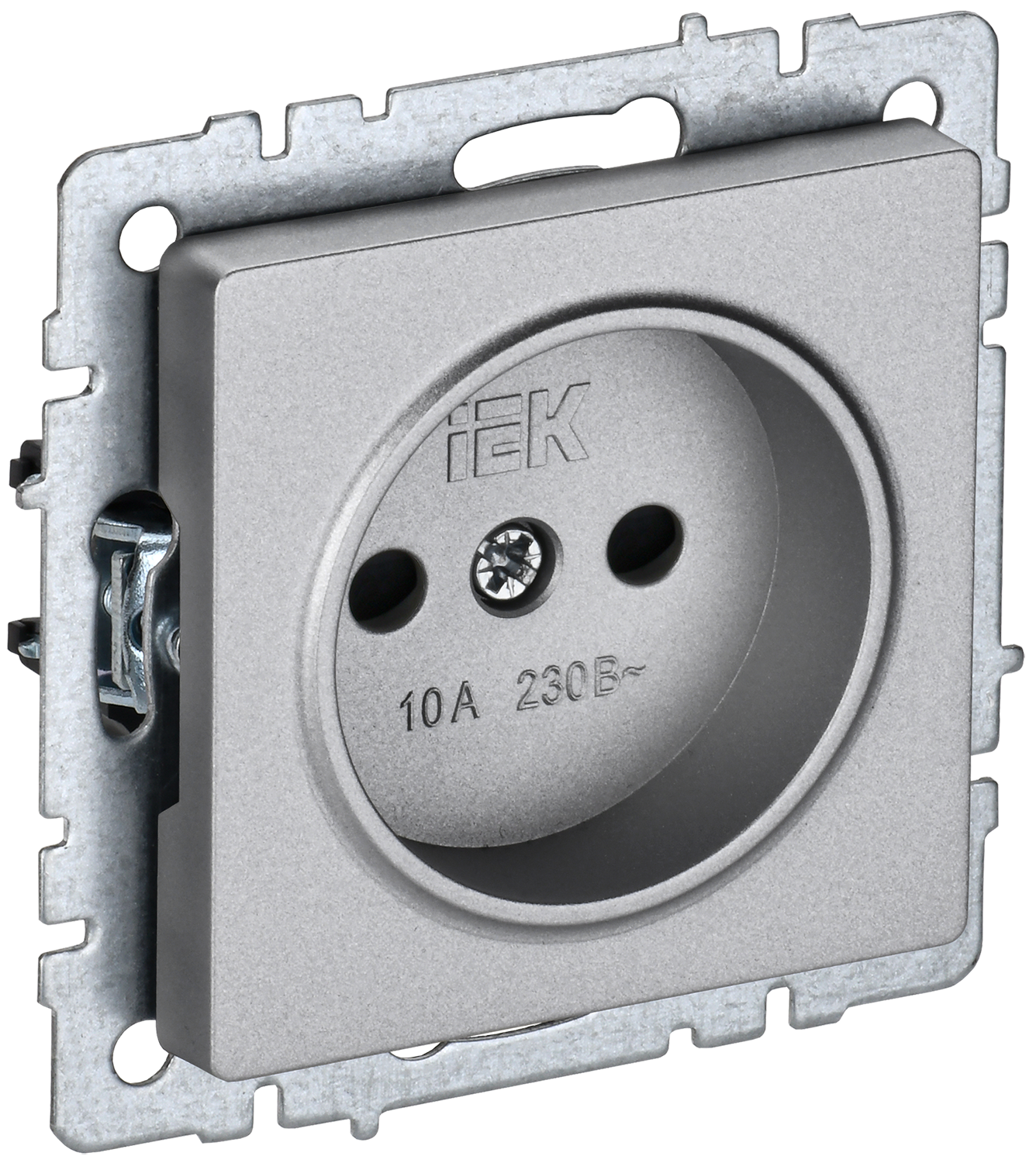BRITE Розетка 1-местная без заземления с защитными шторками 10А РСш10-2-БрА алюминий IEK