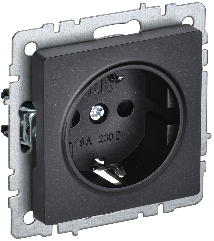 BRITE Розетка 1-местная с заземлением без защитных шторок 16А РС11-1-0-БрЧ черный IEK