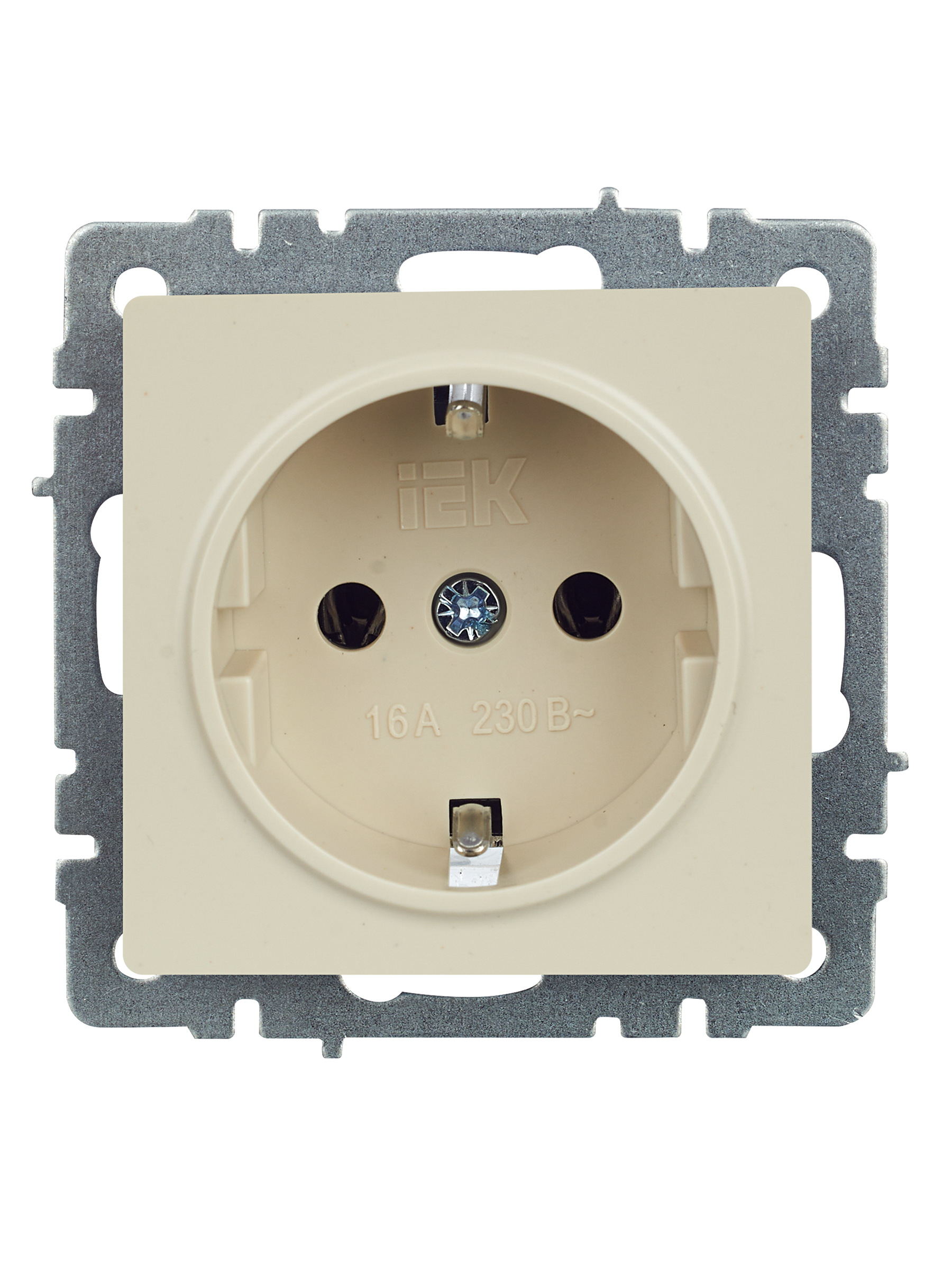 BRITE Розетка 1-местная с заземлением без защитных шторок 16А РС11-1-0-БрКр бежевый IEK