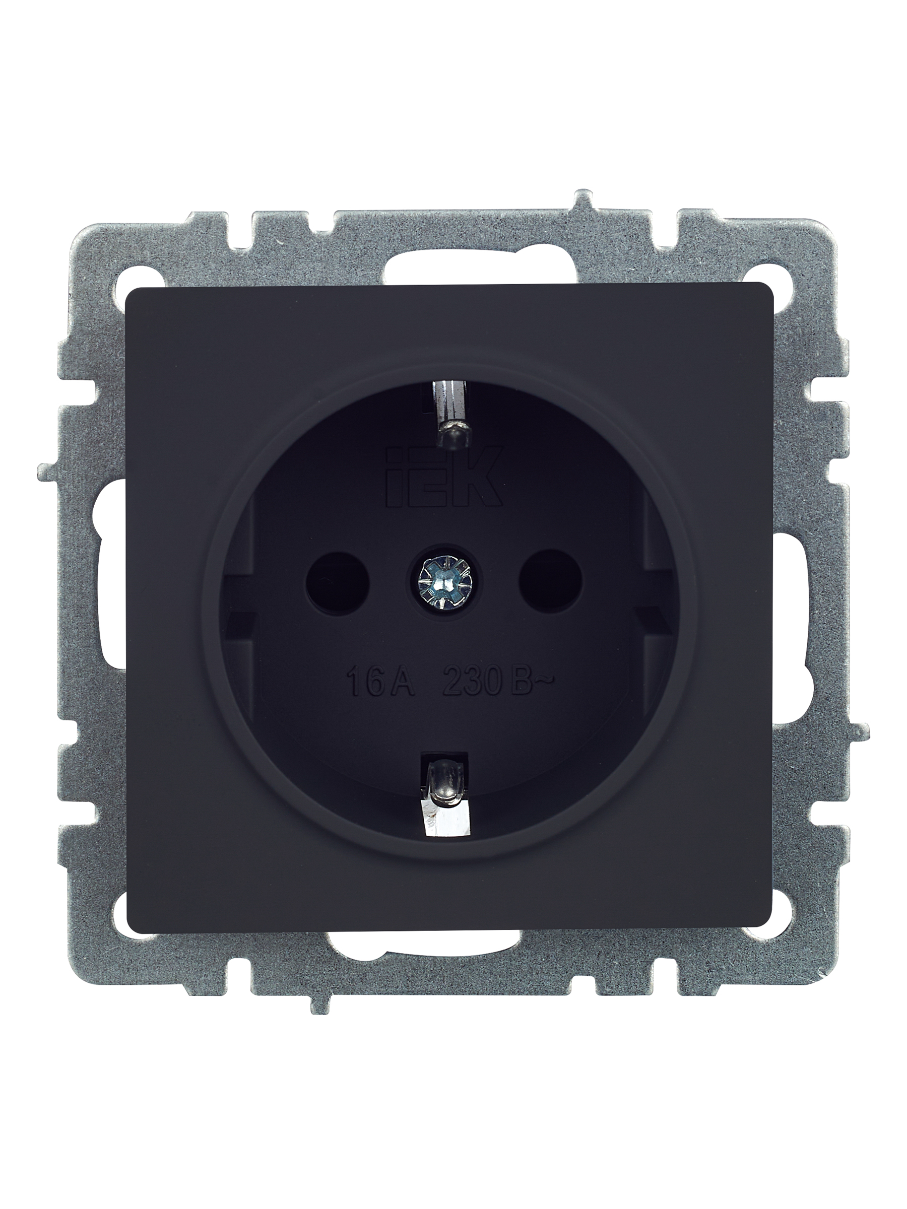 BRITE Розетка 1-местная с заземлением с защитными шторками 16А РС14-1-0-БрГ графит IEK