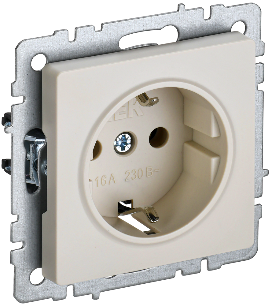 BRITE Розетка 1-местная с заземлением с защитными шторками 16А РС14-1-0-БрКр бежевый IEK