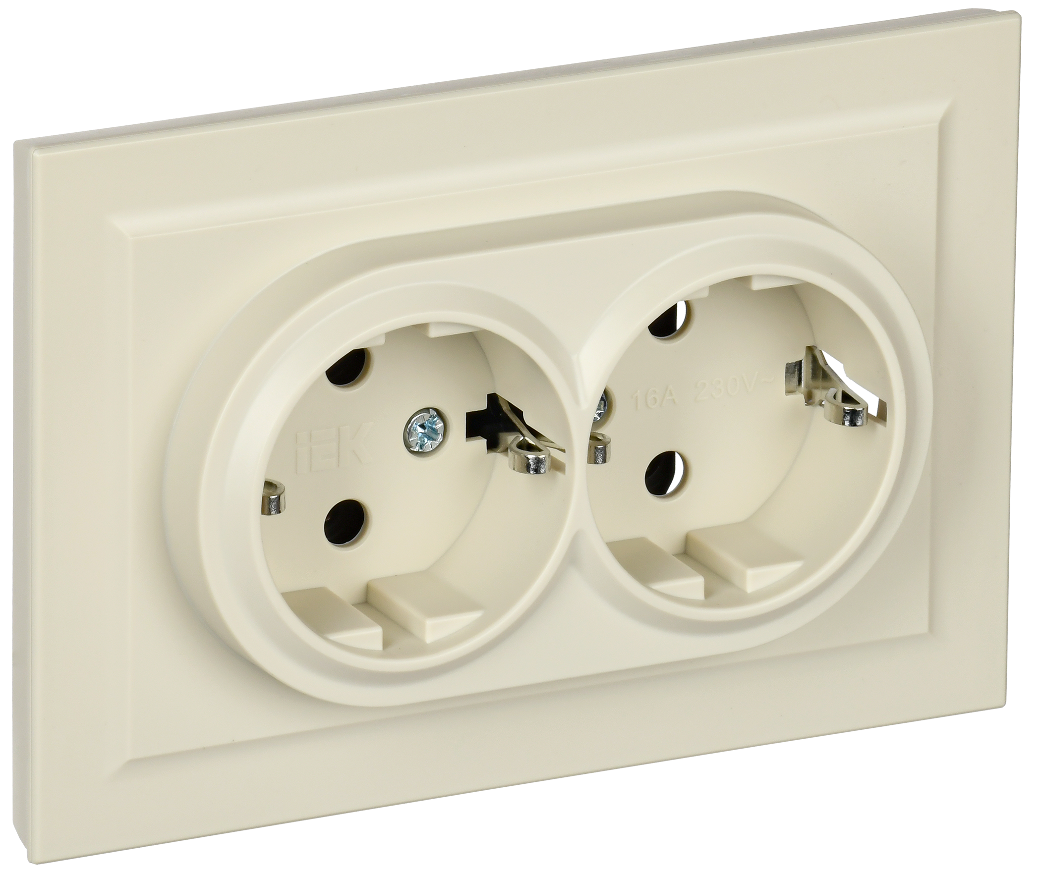 BRITE Розетка 2-местная с заземлением без защитных шторок 16А в сборе РС12-3-БрКр бежевый IEK