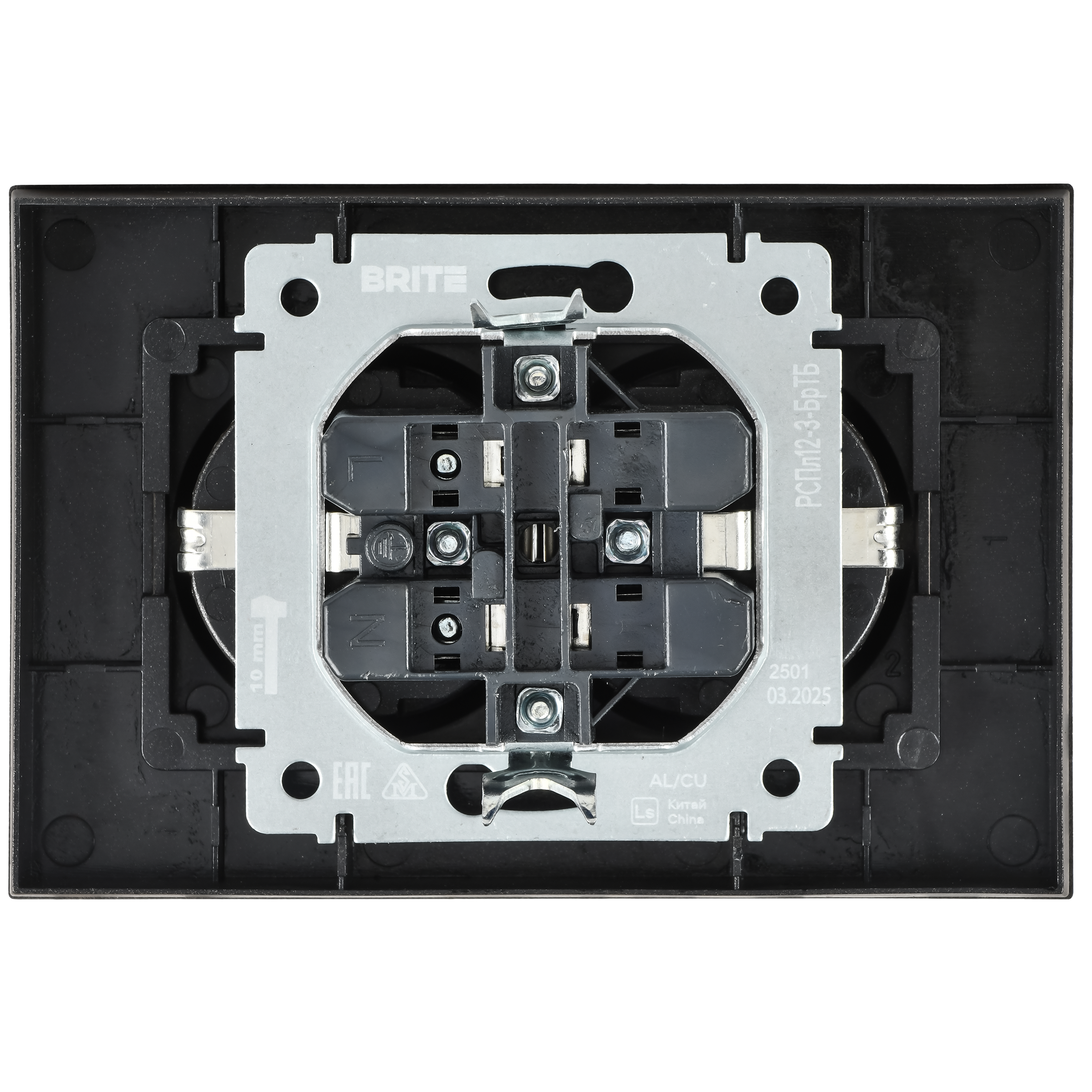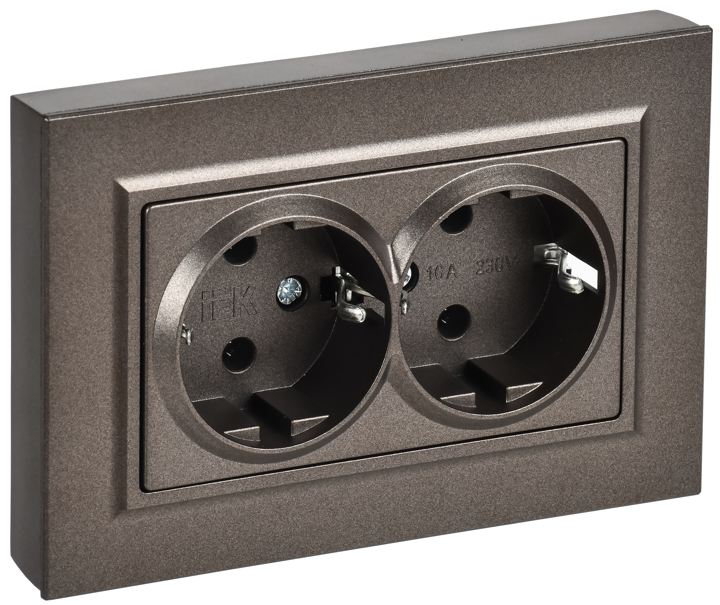 BRITE Розетка 2-местная с заземлением без защитных шторок плоская 16А в сборе РСПл12-3-БрТБ темная бронза IEK