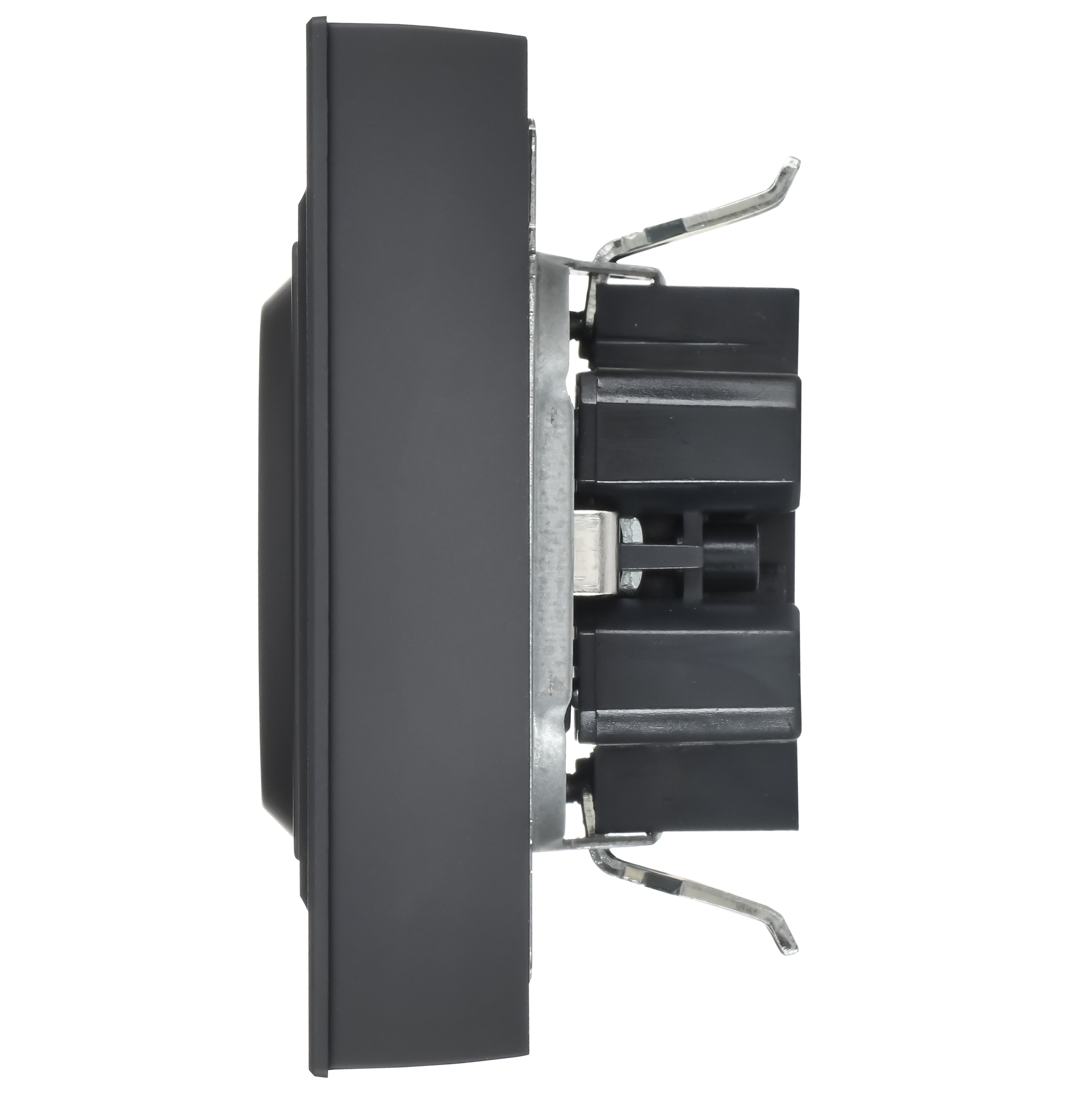 BRITE Розетка 2-местная с заземлением с защитными шторками плоская 16А в сборе РСшПл12-3-БрГ графит IEK