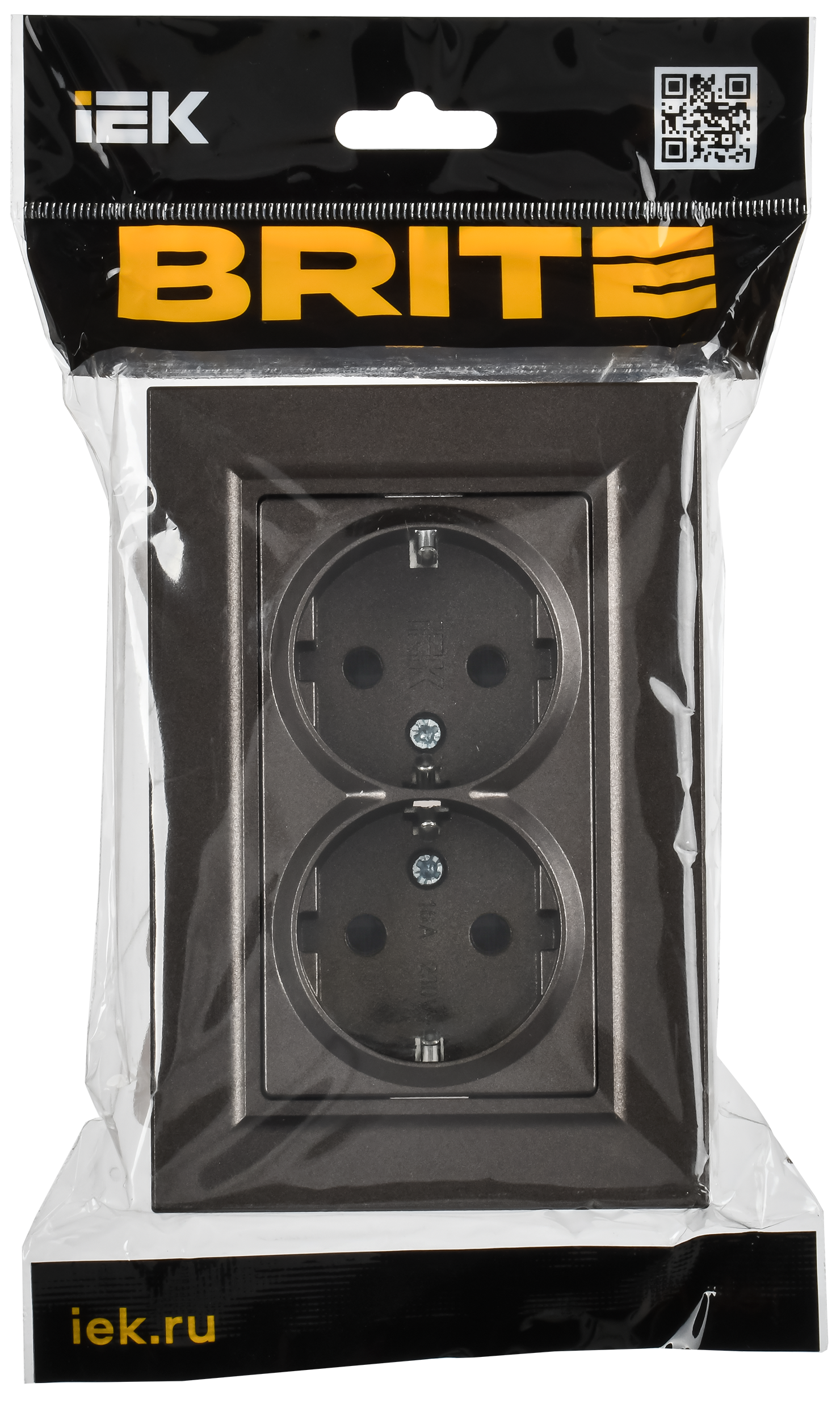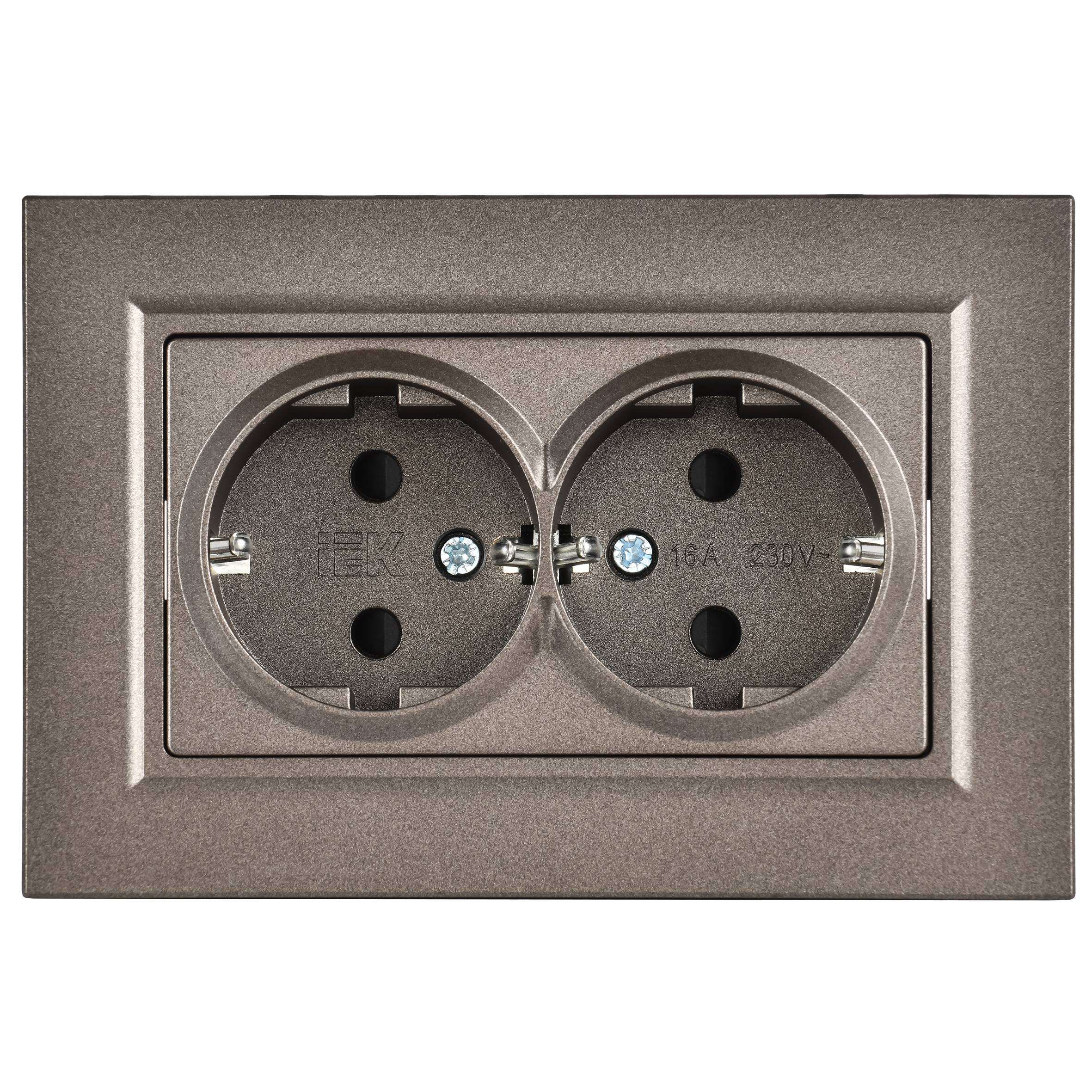BRITE Розетка 2-местная с заземлением с защитными шторками плоская 16А в сборе РСшПл12-3-БрТБ темная бронза IEK
