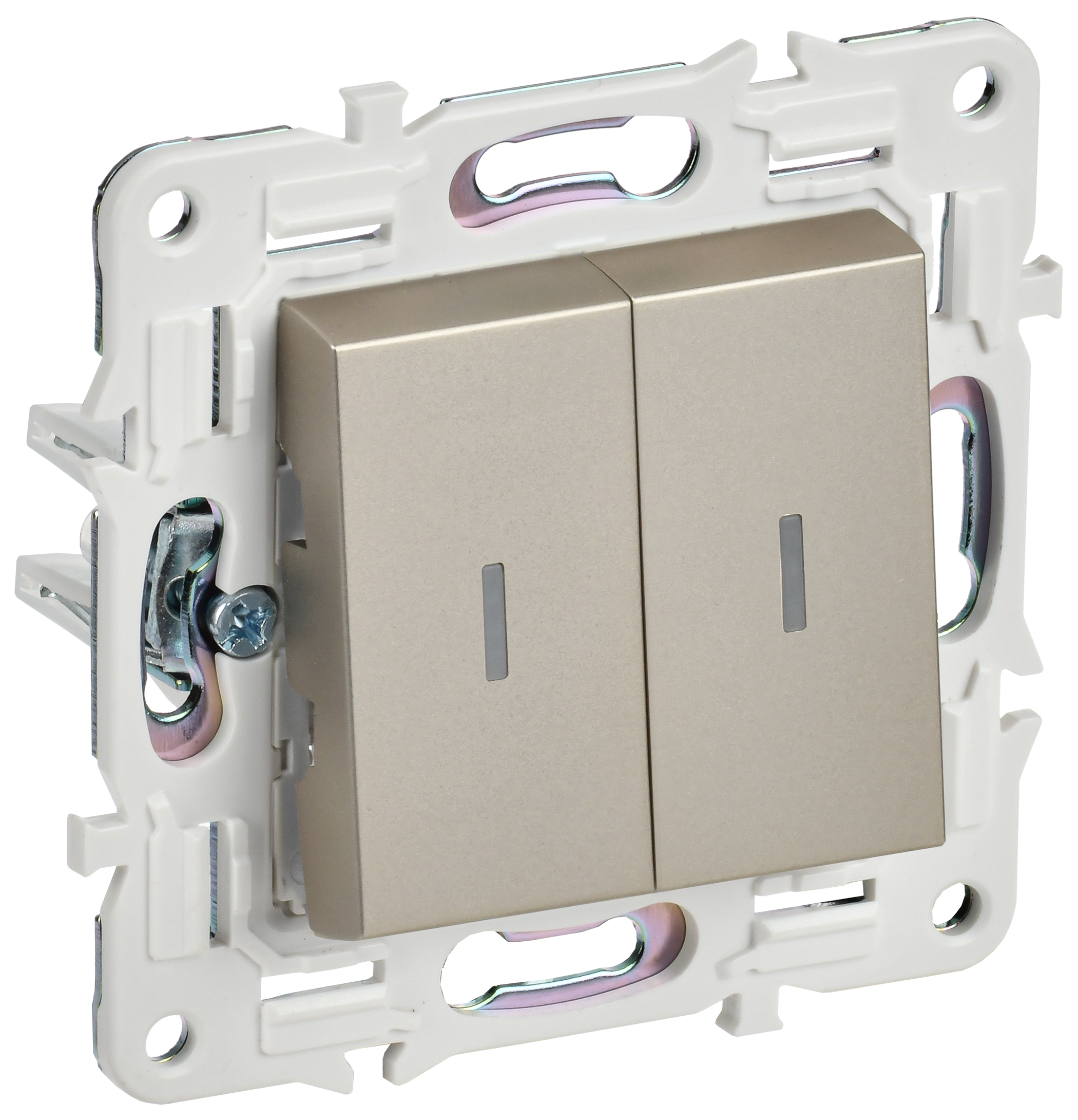 SKANDY Выключатель 2-клавишный проходной с индикацией 10А SK-V10Sh шампань IEK