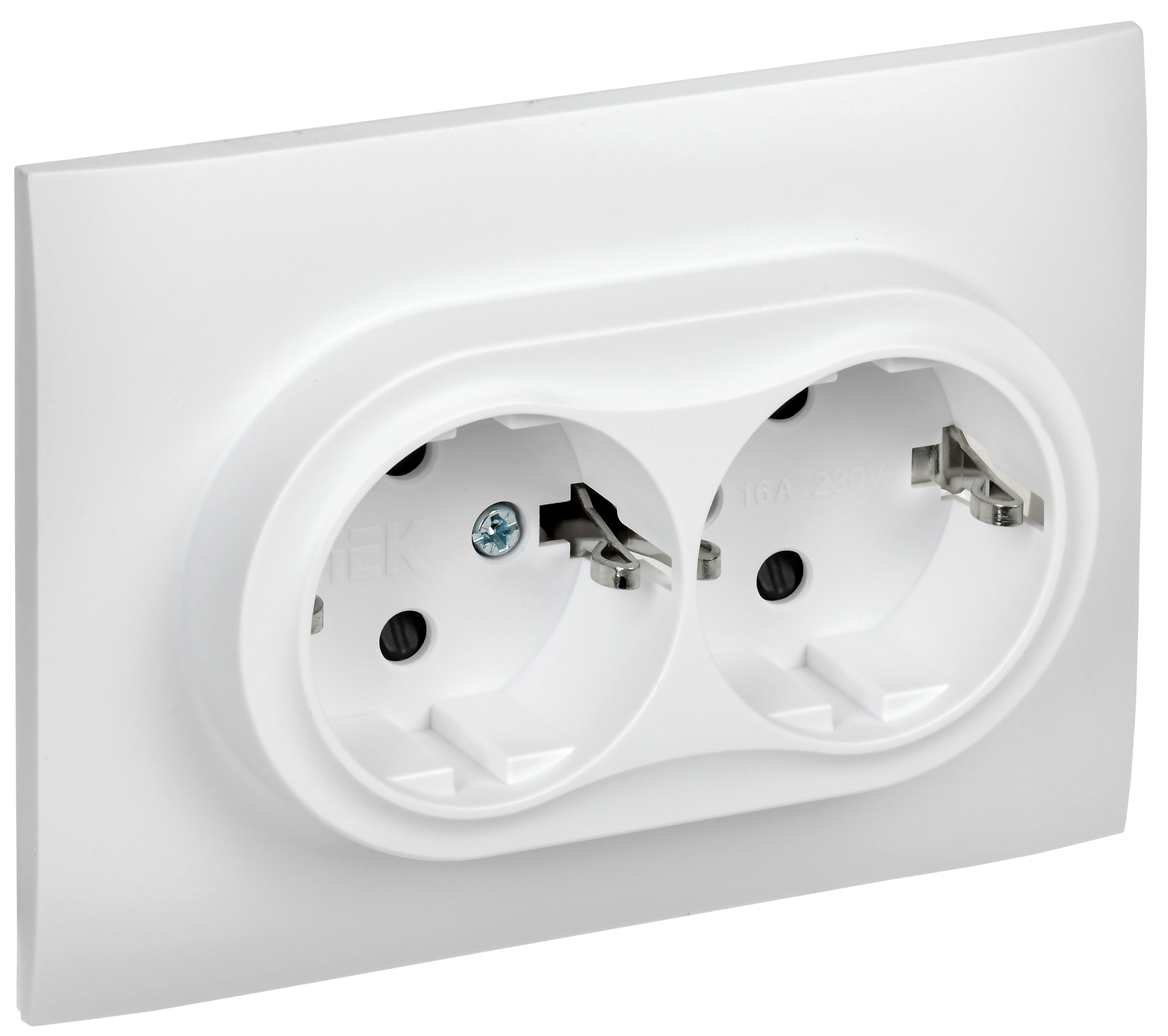 SKANDY Розетка 2-местная с заземлением с защитными шторками 16А в сборе SK-R07W арктический белый IEK