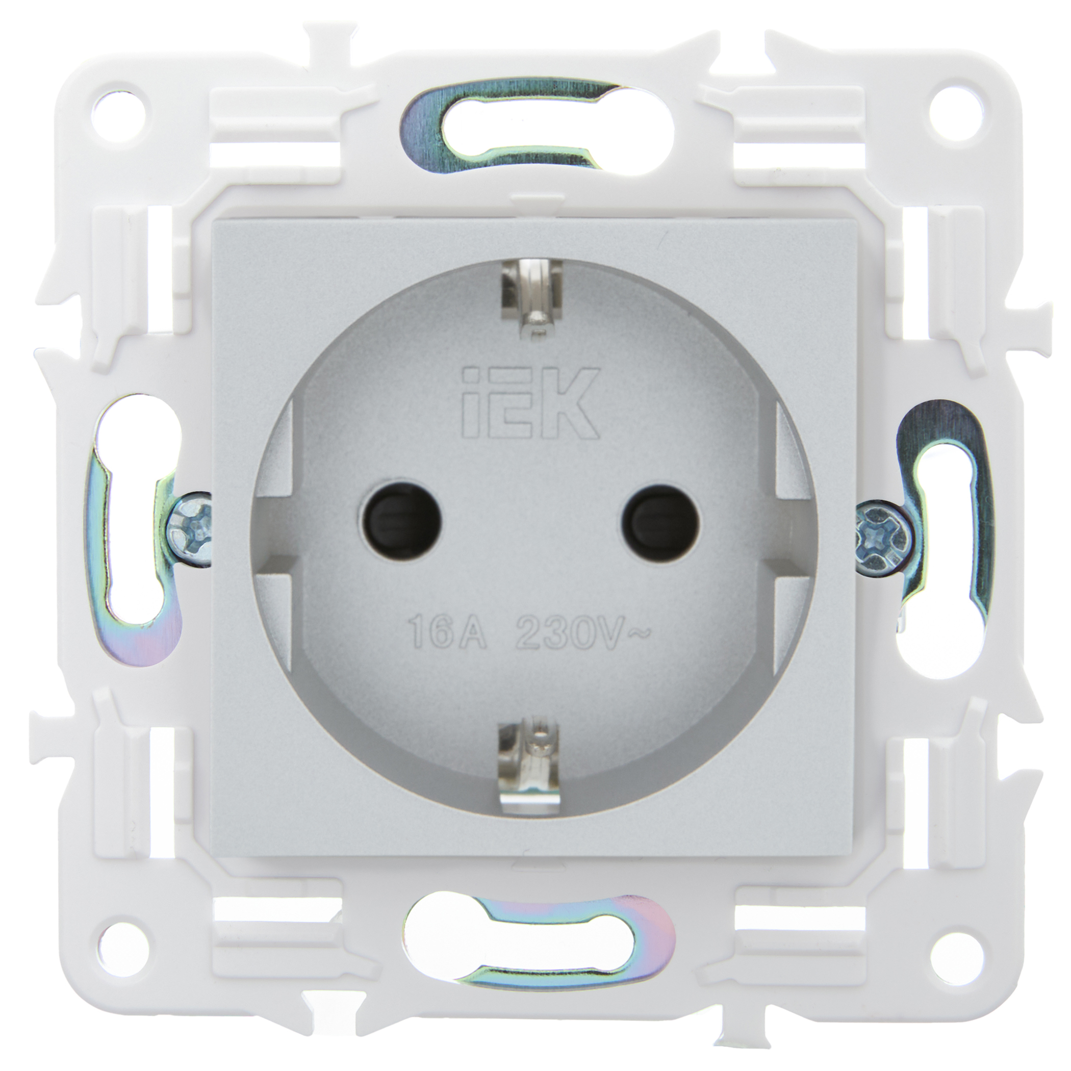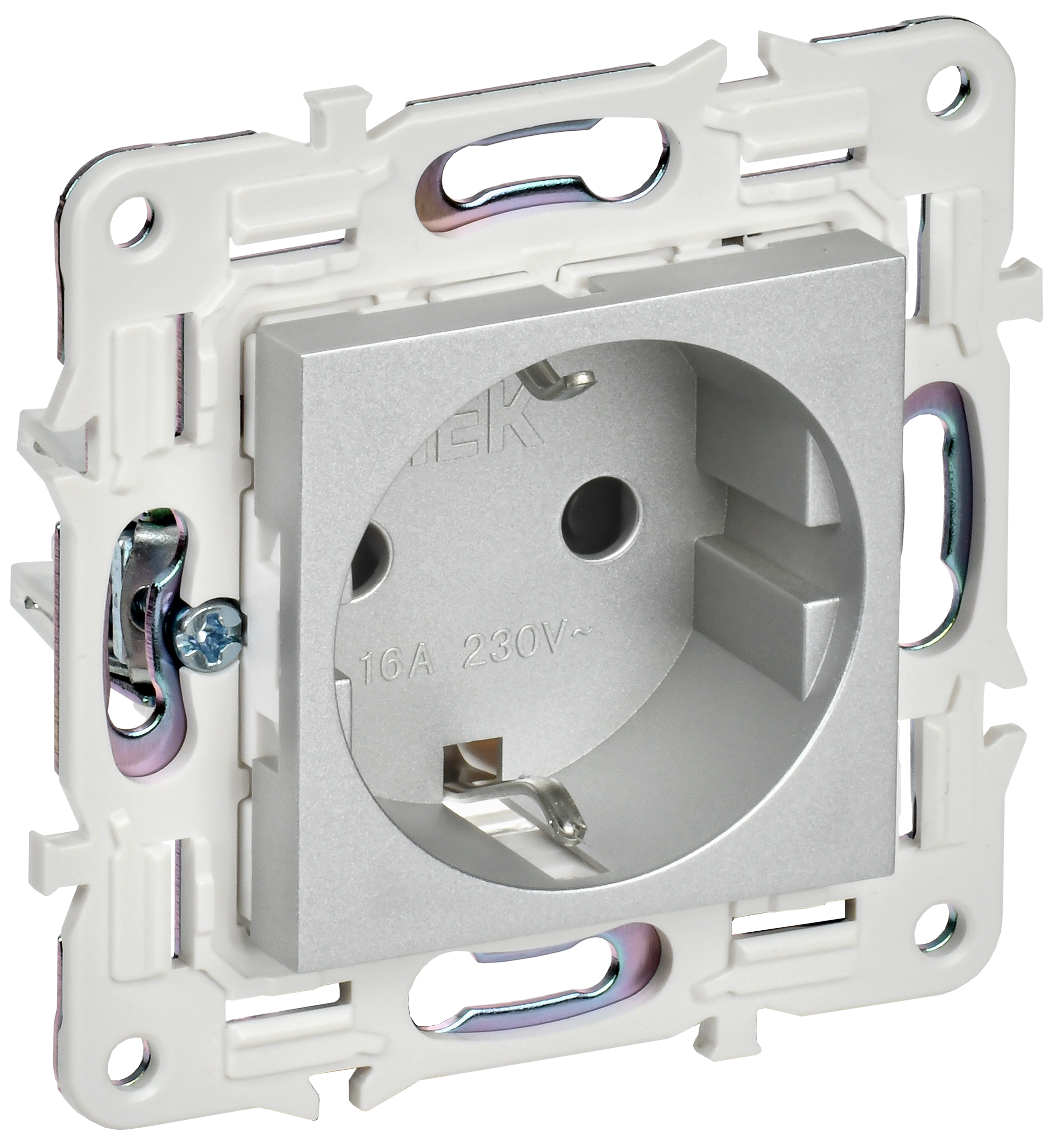 SKANDY Розетка с заземлением с защитными шторками 16А безвинтовое крепление SK-R06S серебряный IEK