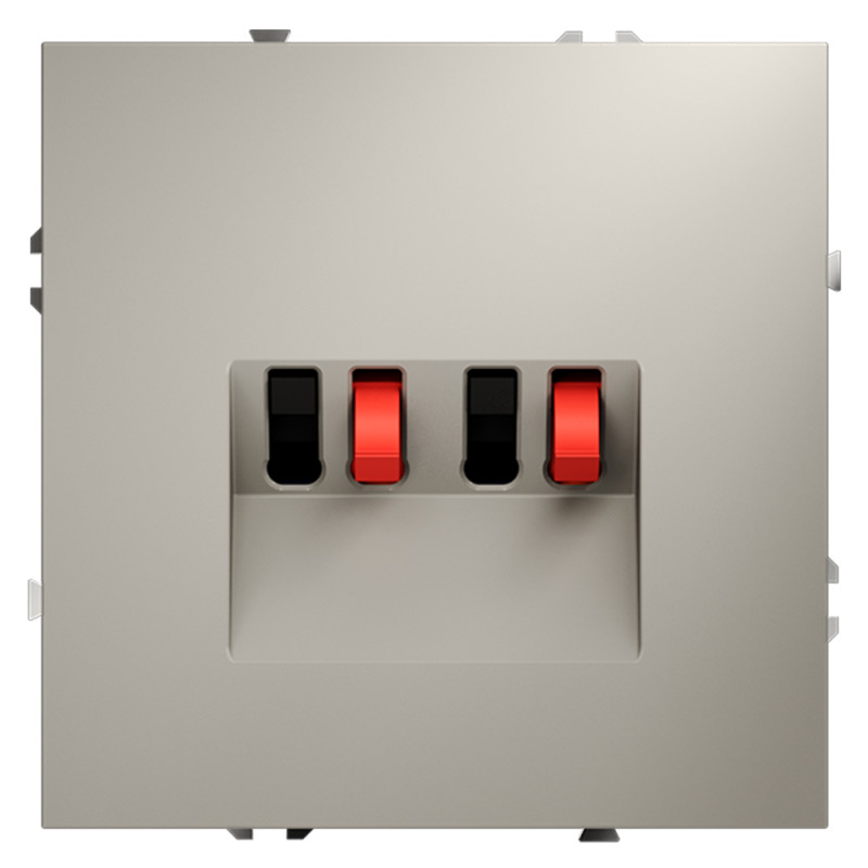 Акустическая розетка Voltum S70, 4‑местная в цвете «кашемир». Акустическая розетка Voltum S70 рассчитана на стационарное подключение акустических систем при скрытом монтаже. Четыре канала позволяют аккуратно развести фронтальные и тыловые колонки в одной точке. Такое решение используют там, где аудиосистема работает постоянно. Гостиная. Домашний кинотеатр. Переговорная.