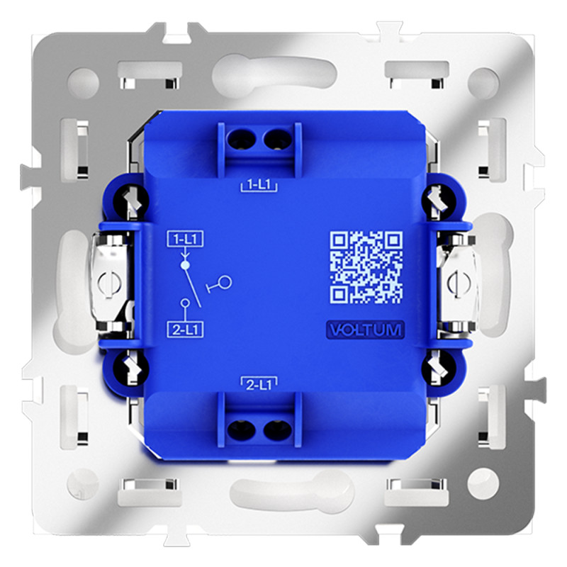 Механизм поддерживает подключение медных проводников размером 0,75–2,5 мм². Самозажимные клеммы обеспечивают плотный и надёжный контакт без сложного инструмента. Монтаж выполняется скрытым способом: устройство устанавливается в подрозетник глубиной около 40 мм, крепится ровно, клавиша работает плавно.