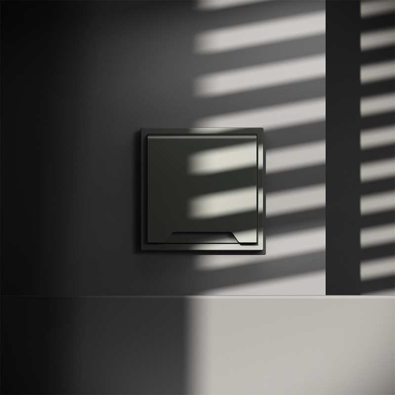 Монтаж выполняют скрыто, в стандартный подрозетник. Механизм совместим с рамками серии S70 и выравнивается в одной плоскости со стеной при корректной установке. Корпус выполнен из пластика, устойчивого к обычным тепловым нагрузкам.