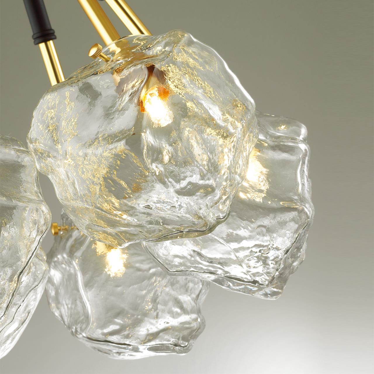 Линия Stono ― потрясающие дизайнерские модели, воплощающие несколько стилей. Например, стиль бионика, характеризующийся природными естественными формами и цветами. Продолговатый, вытянутый вверх силуэт люстры подчеркивает мотивы американского стиля. Сочетание черного и золотого присуще стилю ар деко. Стеклянные плафоны светильника просто завораживают своей необычной формой, естественные шероховатые грани которого особенно будут эффектно смотреться при включенным свете.