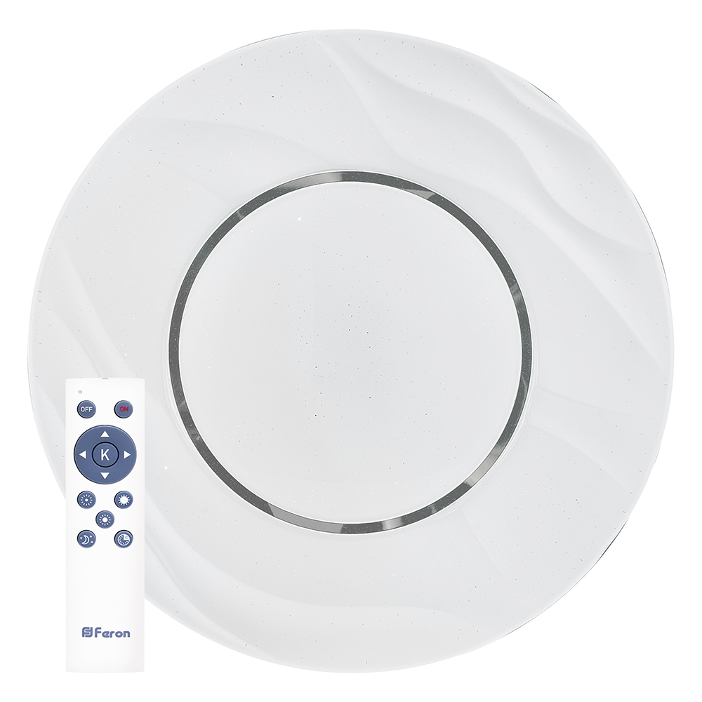Светильник накладной светодиодный, потолочный управляемый (ДПО) FERON AL1836, 72W, 3000К-6000K (теплый-белый-дневной), 230V, 5760Lm, IP20, угол рассеивания 120°, цвет белый, корпус штампованная сталь, рассеиватель матовый пластик, серия "звездное небо", 500*500*60