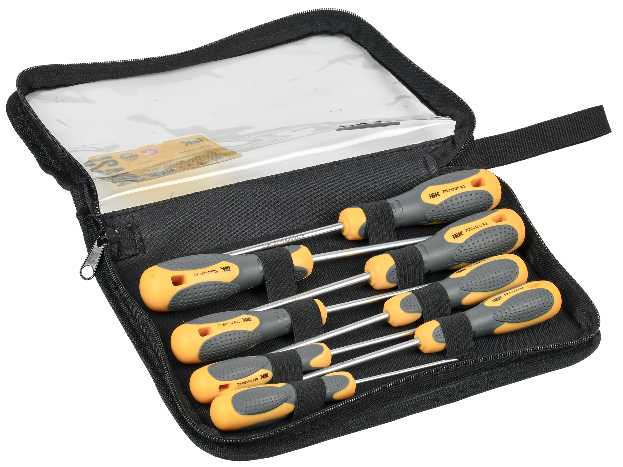 Набор отверток серии К1 (Master) включает в себя: крестообразные отвертки PH1х100, PH2х100, PZ1х100, PZ2х100; шлицевые - SL3,0х75, SL4,0х100, SL5,0х125, SL6,0х150. Комплект, который подойдет для слесарных и монтажных работ. Материал рукояток – полипропилен и поливинилхлорид PP+PVC.