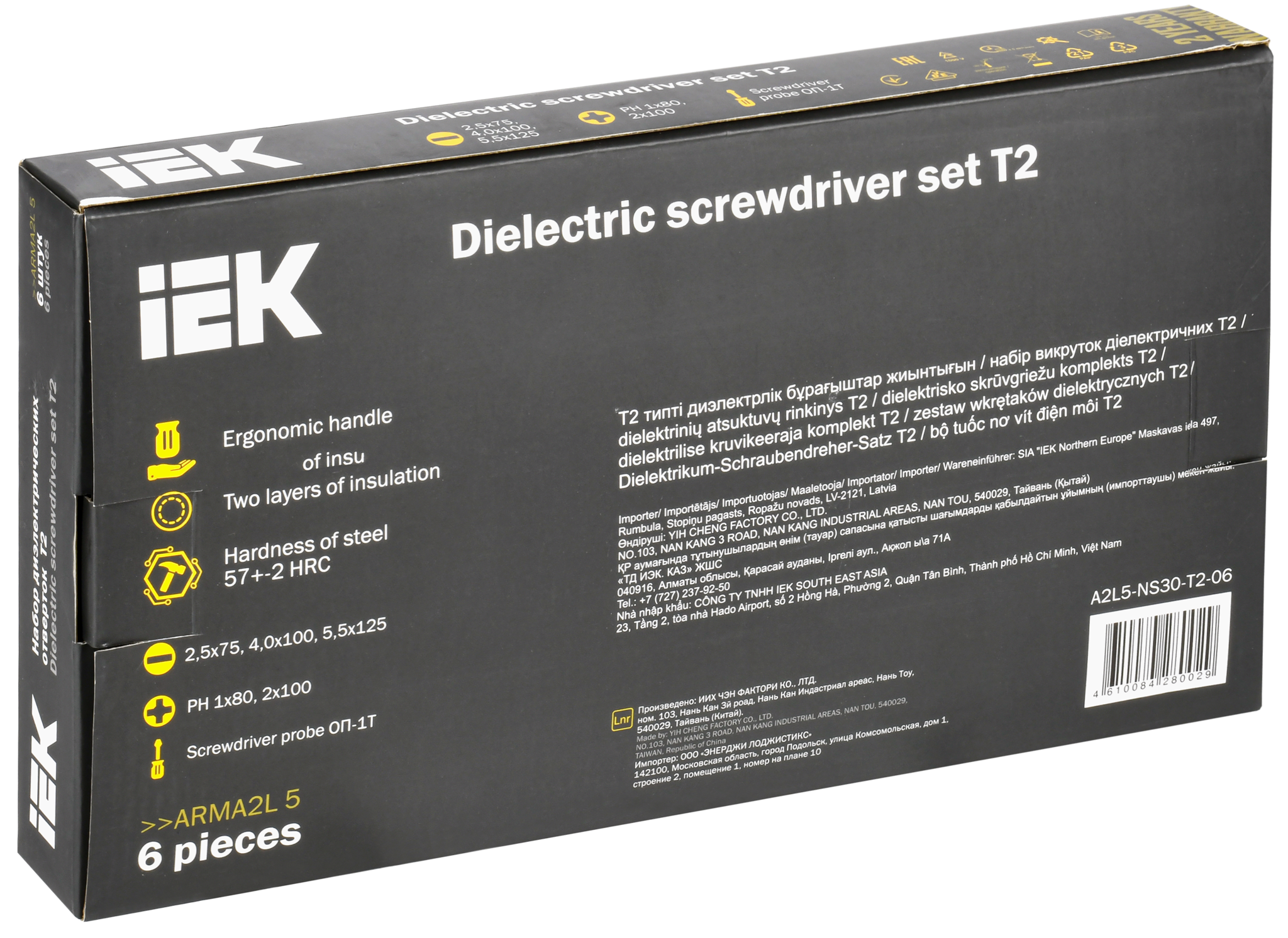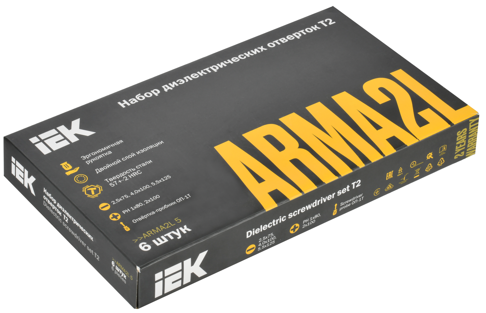 Отвёртки типа Т2 серии ARMA2L 5 предназначены для закручивания и откручивания винтов и шурупов. Допускается использование под напряжением до 1000 В. Отличительной чертой типа Т2 является материал рукояток - двухкомпонентная термопластичная резина: PP + TVP.