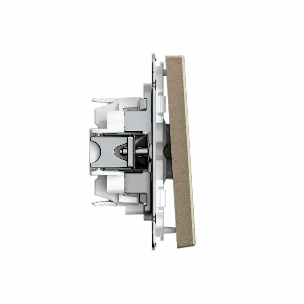 Механизм с быстрозажимными клеммами Systeme Electric серии ArtGallery в цвете шампань переключателя 1-клавишного подходит для сетей 250 В, на ток 10 А. С помощью новых быстрозажимных клемм монтаж стал быстрее. Для подключения не требуется отвертка. Классическое цветовое решение станет изюминкой любого интерьера. Лицевые детали из качественного ABS-пластика, устойчивого к царапинам и УФ-излучению. Лучший промышленный дизайн (по итогам премии МИНПРОМТОРГ 2023).