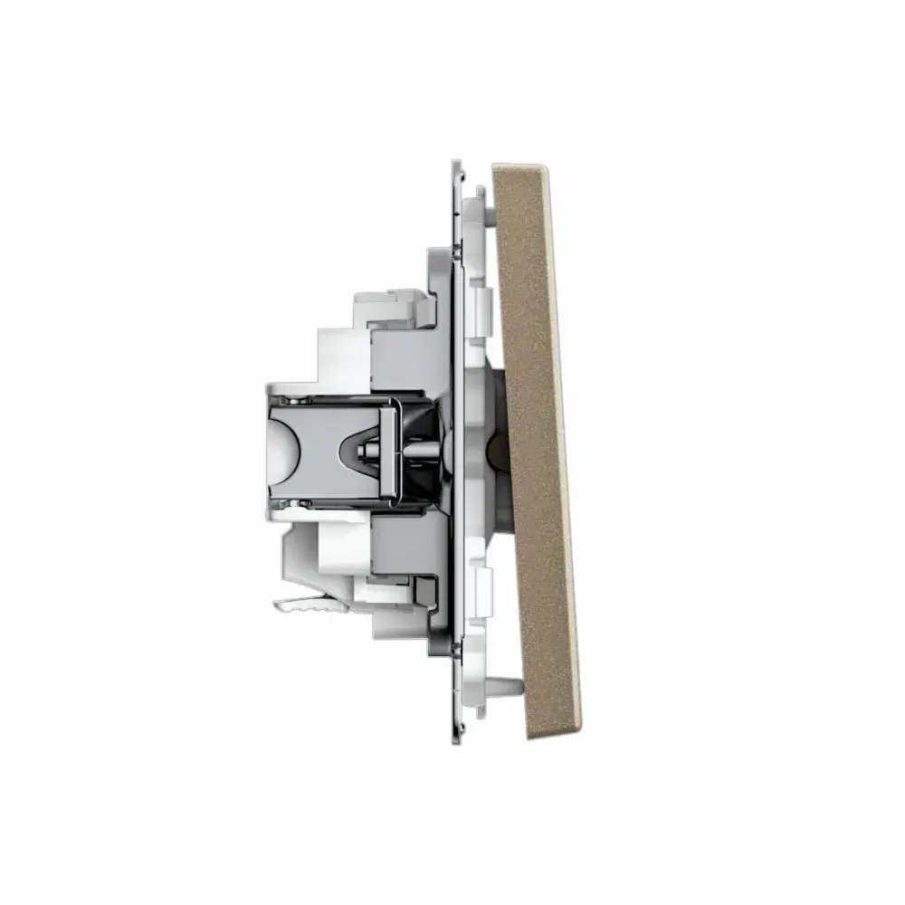 Механизм с быстрозажимными клеммами Systeme Electric серии ArtGallery в цвете шампань выключателя 1-клавишного подходит для сетей 250 В, на ток 10 А. С помощью новых быстрозажимных клемм монтаж стал быстрее. Для подключения не требуется отвертка. Классическое цветовое решение станет изюминкой любого интерьера. Лицевые детали из качественного ABS-пластика, устойчивого к царапинам и УФ-излучению. Лучший промышленный дизайн (по итогам премии МИНПРОМТОРГ 2023).
