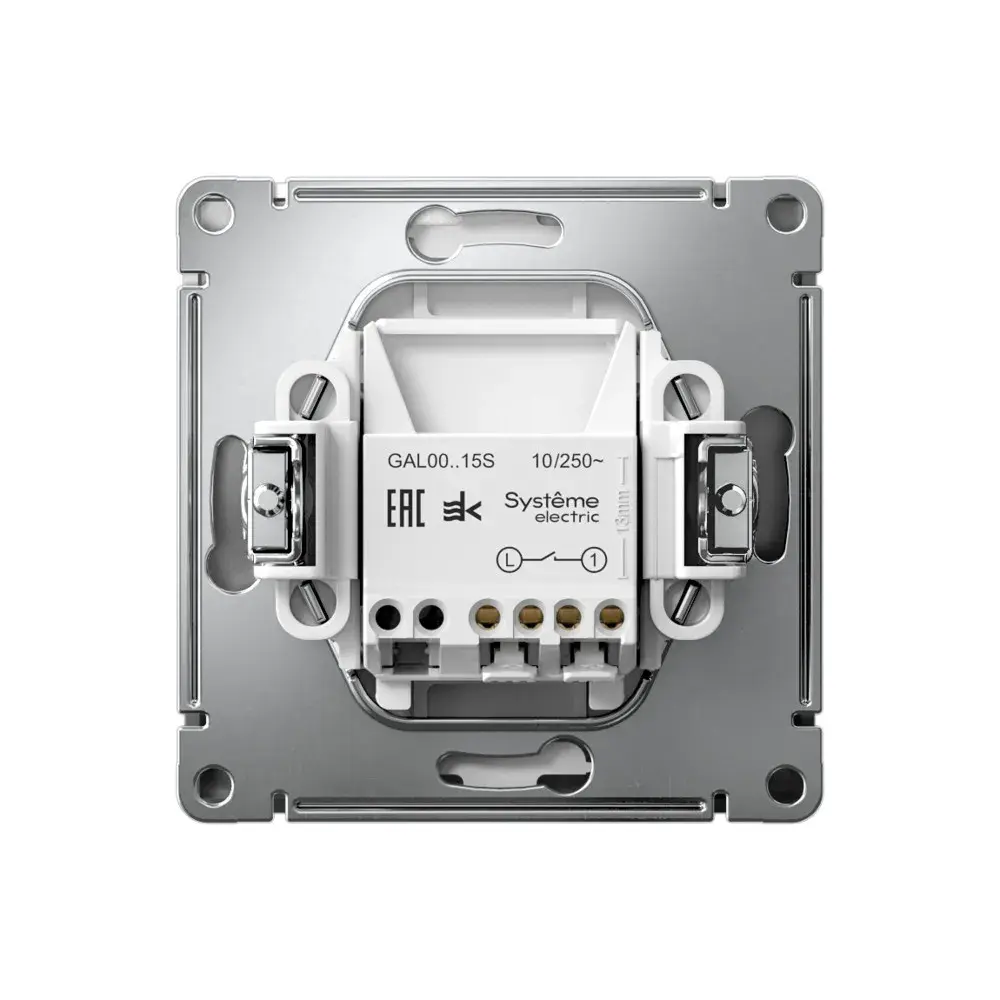 Механизм с быстрозажимными клеммами Systeme Electric серии ArtGallery в цвете сталь выключателя 1-клавишного с самовозвратом подходит для сетей 250 В, на ток 10 А. С помощью новых быстрозажимных клемм монтаж стал быстрее. Для подключения не требуется отвертка. К изделиям в этом роскошном цвете приятно прикоснуться. Лицевые детали из качественного ABS-пластика, устойчивого к царапинам и УФ-излучению. Лучший промышленный дизайн (по итогам премии МИНПРОМТОРГ 2023).