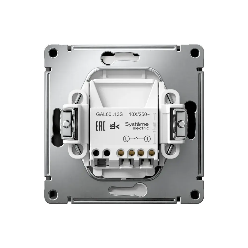 Механизм с быстрозажимными клеммами Systeme Electric серии ArtGallery в цвете карбон выключателя 1-клавишного с подсветкой подходит для сетей 250 В, на ток 10 А. С помощью новых быстрозажимных клемм монтаж стал быстрее. Для подключения не требуется отвертка. К изделиям в этом роскошном цвете приятно прикоснуться. Лицевые детали из качественного ABS-пластика, устойчивого к царапинам и УФ-излучению. Лучший промышленный дизайн (по итогам премии МИНПРОМТОРГ 2023).