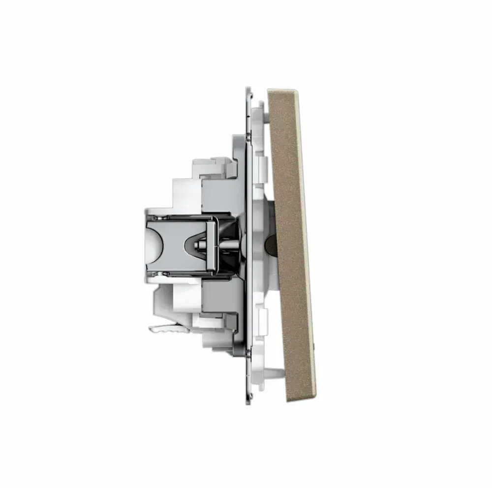 Механизм с быстрозажимными клеммами Systeme Electric серии ArtGallery в цвете шампань выключателя 1-клавишного с подсветкой подходит для сетей 250 В, на ток 10 А. С помощью новых быстрозажимных клемм монтаж стал быстрее. Для подключения не требуется отвертка. Классическое цветовое решение станет изюминкой любого интерьера. Лицевые детали из качественного ABS-пластика, устойчивого к царапинам и УФ-излучению. Лучший промышленный дизайн (по итогам премии МИНПРОМТОРГ 2023).