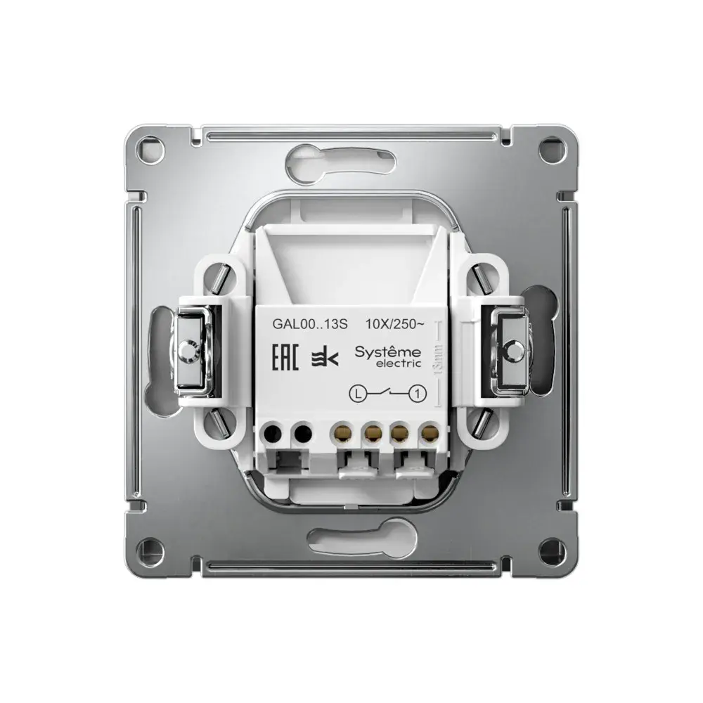 Механизм с быстрозажимными клеммами Systeme Electric серии ArtGallery в цвете сталь выключателя 1-клавишного с подсветкой подходит для сетей 250 В, на ток 10 А. С помощью новых быстрозажимных клемм монтаж стал быстрее. Для подключения не требуется отвертка. К изделиям в этом роскошном цвете приятно прикоснуться. Лицевые детали из качественного ABS-пластика, устойчивого к царапинам и УФ-излучению. Лучший промышленный дизайн (по итогам премии МИНПРОМТОРГ 2023).