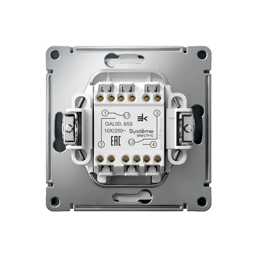 Механизм с быстрозажимными клеммами Systeme Electric серии ArtGallery в цвете грифель переключателя 2-клавишного подходит для сетей 250 В, на ток 10 А. С помощью новых быстрозажимных клемм монтаж стал быстрее. Для подключения не требуется отвертка. Уникальный цвет, аналогов которому нет на рынке, соответствует современным трендам в дизайне интерьера. Лицевые детали из качественного ABS-пластика, устойчивого к царапинам и УФ-излучению. Лучший промышленный дизайн (по итогам премии МИНПРОМТОРГ 2023)