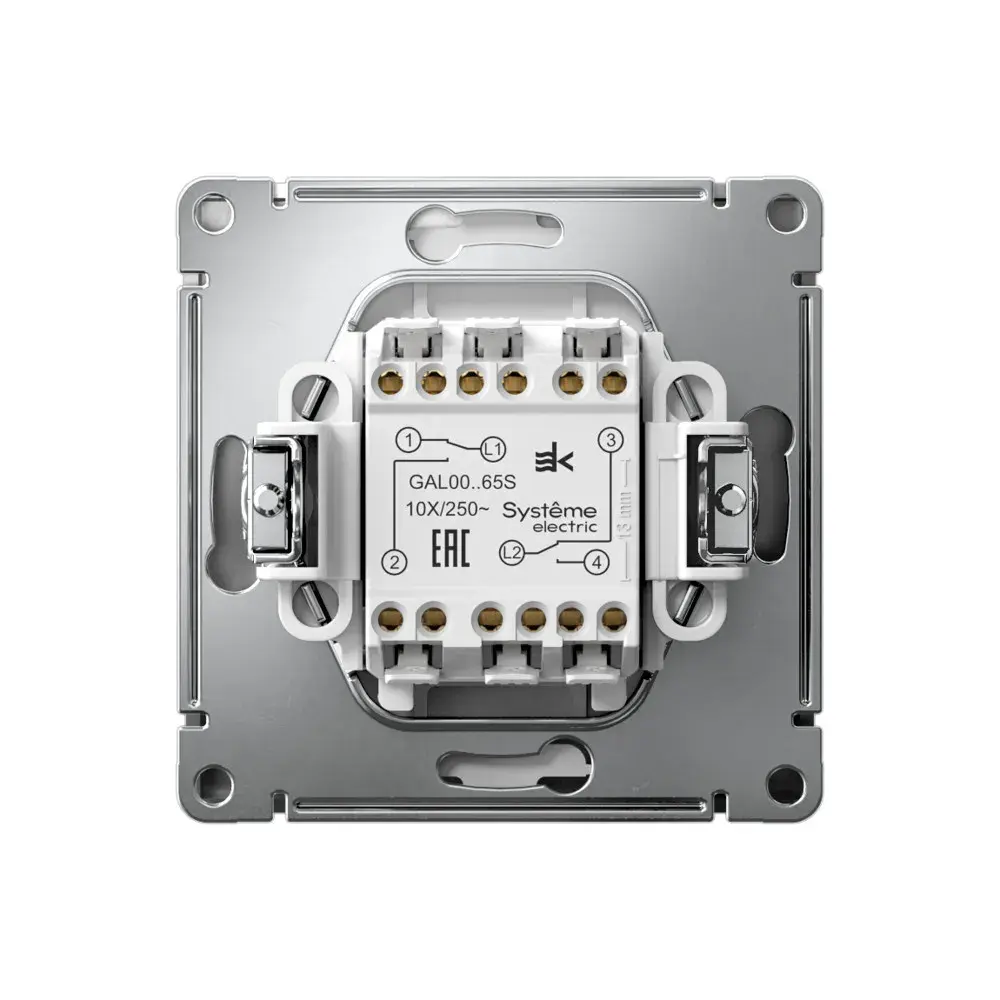 Механизм с быстрозажимными клеммами Systeme Electric серии ArtGallery в цвете сталь переключателя 2-клавишного подходит для сетей 250 В, на ток 10 А. С помощью новых быстрозажимных клемм монтаж стал быстрее. Для подключения не требуется отвертка. К изделиям в этом роскошном цвете приятно прикоснуться. Лицевые детали из качественного ABS-пластика, устойчивого к царапинам и УФ-излучению. Лучший промышленный дизайн (по итогам премии МИНПРОМТОРГ 2023).