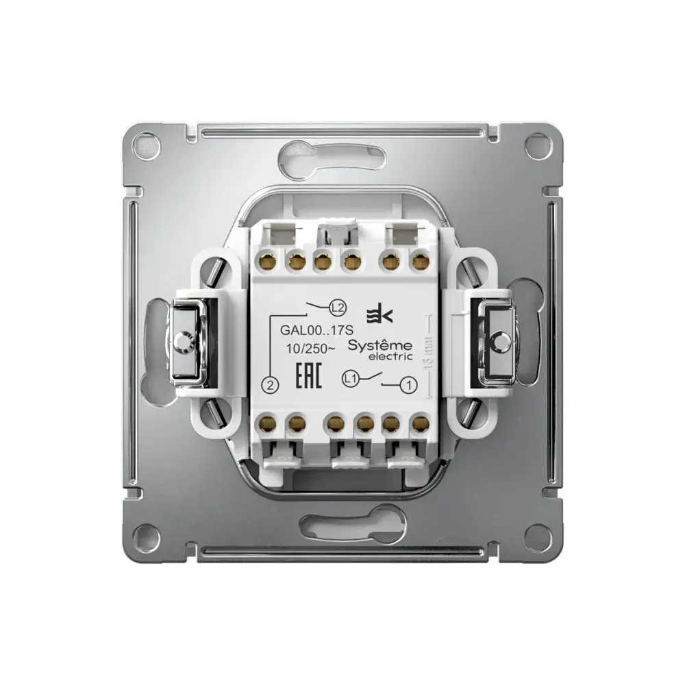 Механизм с быстрозажимными клеммами Systeme Electric серии ArtGallery в цвете алюминий выключателя 2-клавишного с самовозвратом подходит для сетей 250 В, на ток 10 А. С помощью новых быстрозажимных клемм монтаж стал быстрее. Для подключения не требуется отвертка. Классическое цветовое решение станет изюминкой любого интерьера. Лицевые детали из качественного ABS-пластика, устойчивого к царапинам и УФ-излучению. Лучший промышленный дизайн (по итогам премии МИНПРОМТОРГ 2023).