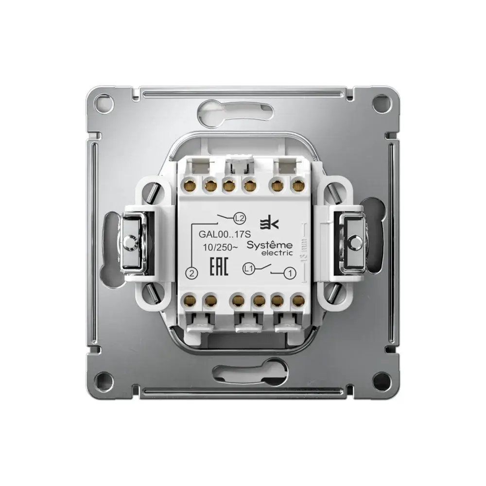 Механизм с быстрозажимными клеммами Systeme Electric серии ArtGallery в цвете сталь выключателя 2-клавишного с самовозвратом подходит для сетей 250 В, на ток 10 А. С помощью новых быстрозажимных клемм монтаж стал быстрее. Для подключения не требуется отвертка. К изделиям в этом роскошном цвете приятно прикоснуться. Лицевые детали из качественного ABS-пластика, устойчивого к царапинам и УФ-излучению. Лучший промышленный дизайн (по итогам премии МИНПРОМТОРГ 2023).