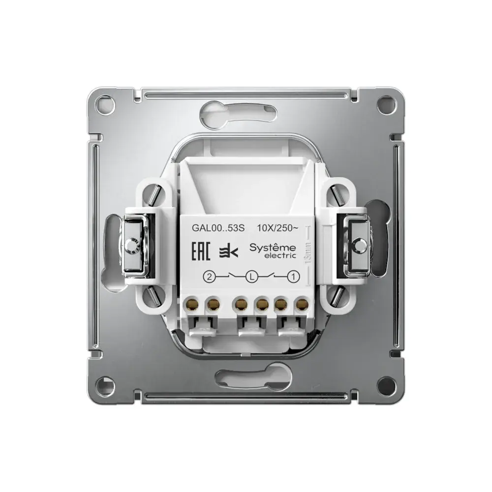 Механизм с быстрозажимными клеммами Systeme Electric серии ArtGallery в цвете сталь выключателя 2-клавишного с подсветкой подходит для сетей 250 В, на ток 10 А. С помощью новых быстрозажимных клемм монтаж стал быстрее. Для подключения не требуется отвертка. К изделиям в этом роскошном цвете приятно прикоснуться. Лицевые детали из качественного ABS-пластика, устойчивого к царапинам и УФ-излучению. Лучший промышленный дизайн (по итогам премии МИНПРОМТОРГ 2023).