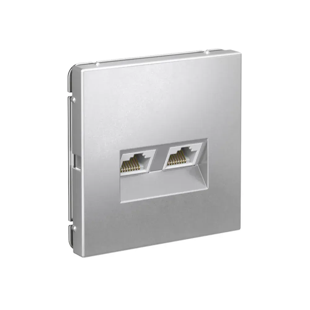 Механизм Systeme Electric серии ArtGallery в цвете алюминий двойной компьютерной розетки с разъёмом RJ45+RJ45 кат. 5Е предназначен для быстрого подключения компьютера к локальной вычислительной сети. Классическое цветовое решение станет изюминкой любого интерьера. Обладает высокой скоростью передачи данных до 10 Гбит/с, диапазон частоты до 500 МГц. Лицевые детали из качественного ABS-пластика, устойчивого к царапинам и УФ-излучению. Лучший промышленный дизайн (по итогам премии МИНПРОМТОРГ 2023)