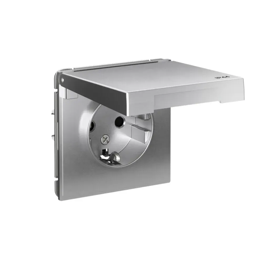Механизм Systeme Electric серии ArtGallery Aqua в цвете алюминий розетки одинарной с заземлением, шторками и крышкой подходит для сетей 250 В, на ток 16 А. Классическое цветовое решение станет изюминкой любого интерьера. Изделие со степенью защиты IP44 обеспечит безопасность использования в ванной и на кухне. Несмотря на внешнее сходство, конструкция рамок серии ArtGallery Aqua отличается от конструкции рамок ArtGallery. Механизмы и рамки со степенью защиты IP20 несовместимы с механизмами и рамками со степенью защиты IP44. Лучший промышленный дизайн (по итогам премии МИНПРОМТОРГ 2023).