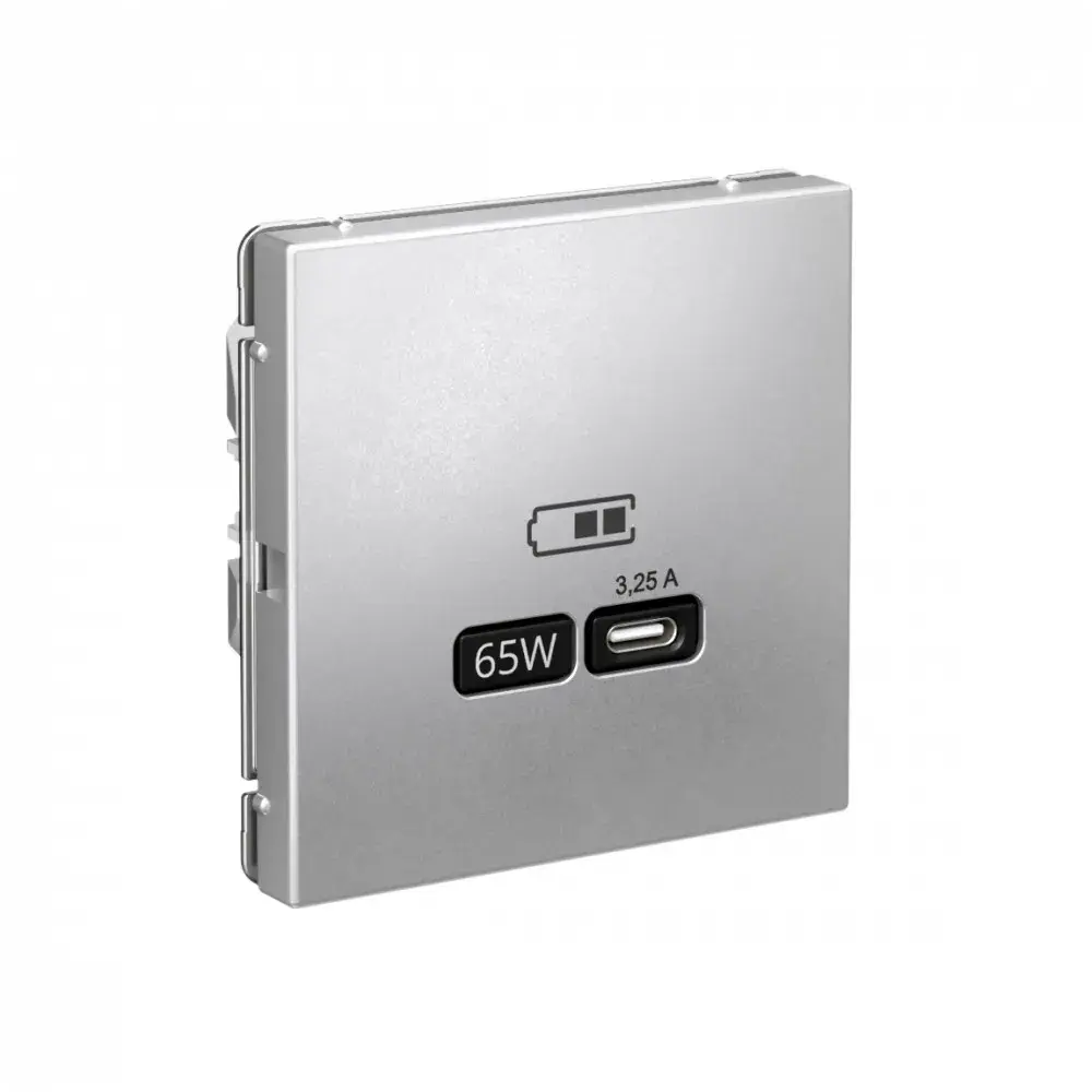 Розетка Systeme Electric серии ArtGallery в цвете алюминий USB с разъемом типа C высокоскоростная. Классическое цветовое решение станет изюминкой любого интерьера. Самая современная USB-зарядка позволяет заряжать ноутбук, а также смартфоны последнего поколения, которые поддерживают функцию быстрой зарядки. Мощность: тип-С 65Вт. Поддерживает современные протоколы быстрой зарядки QC, PD, последних версий. Лицевые детали из качественного ABS-пластика, устойчивого к царапинам и УФ-излучению. Лучший промышленный дизайн (по итогам премии МИНПРОМТОРГ 2023).