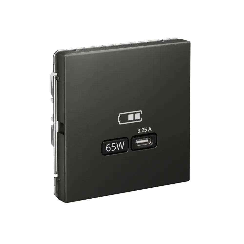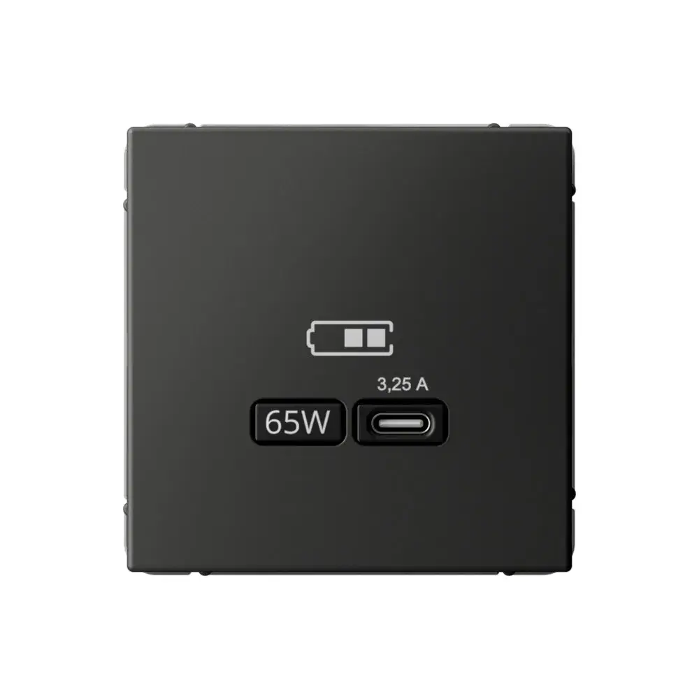 Розетка Systeme Electric серии ArtGallery в цвете базальт USB с разъемом типа C высокоскоростная. Решение для ценителей матовых поверхностей в интерьере, к которым приятно прикоснуться. Самая современная USB-зарядка позволяет заряжать ноутбук, а также смартфоны последнего поколения, которые поддерживают функцию быстрой зарядки. Мощность: тип-С 65Вт. Поддерживает современные протоколы быстрой зарядки QC, PD, последних версий. Лицевые детали из качественного ABS-пластика, устойчивого к царапинам и УФ-излучению. Лучший промышленный дизайн (по итогам премии МИНПРОМТОРГ 2023).