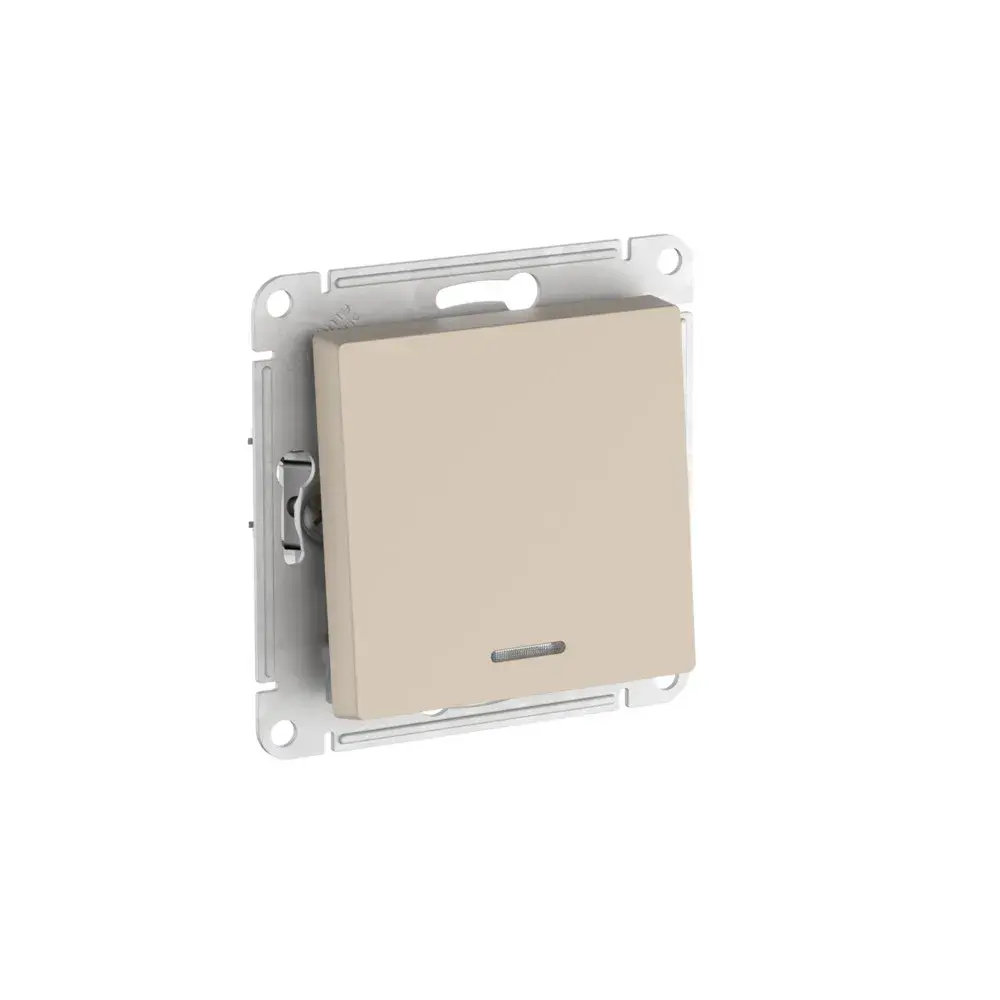 <div class="_truncate" data-v-566031d2><p>Механизм с быстрозажимными клеммами Systeme Electric (ранее Schneider Electric) серии AtlasDesign в цвете песочный 1-клавишного переключателя с подсветкой подходит для сетей 250 В, на ток 10 А. С помощью новых быстрозажимных клемм монтаж розеток и выключателей стал намного быстрее. Теперь подключение не требует использования отвертки.