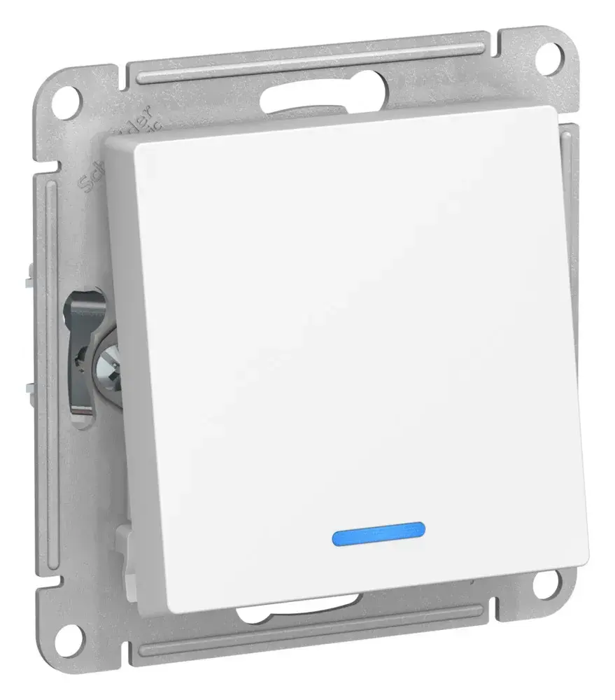 Механизм переключателя 1-клавишного с подсветкой Systeme Electric (ранее Schneider Electric) серии AtlasDesign в цвете ЛОТОС подходит для сетей 250 В, на ток 10 А. - Благодаря светодиодной подсветке синего цвета изделие легко найти в темноте. - Переключатель позволяют управлять одним источником света с двух точек. - Лицевые детали из качественного ABS-пластика, устойчивого к царапинам и УФ-излучению. - Усиленные прямые монтажные лапки для лучшей фиксации механизма в монтажной коробке.