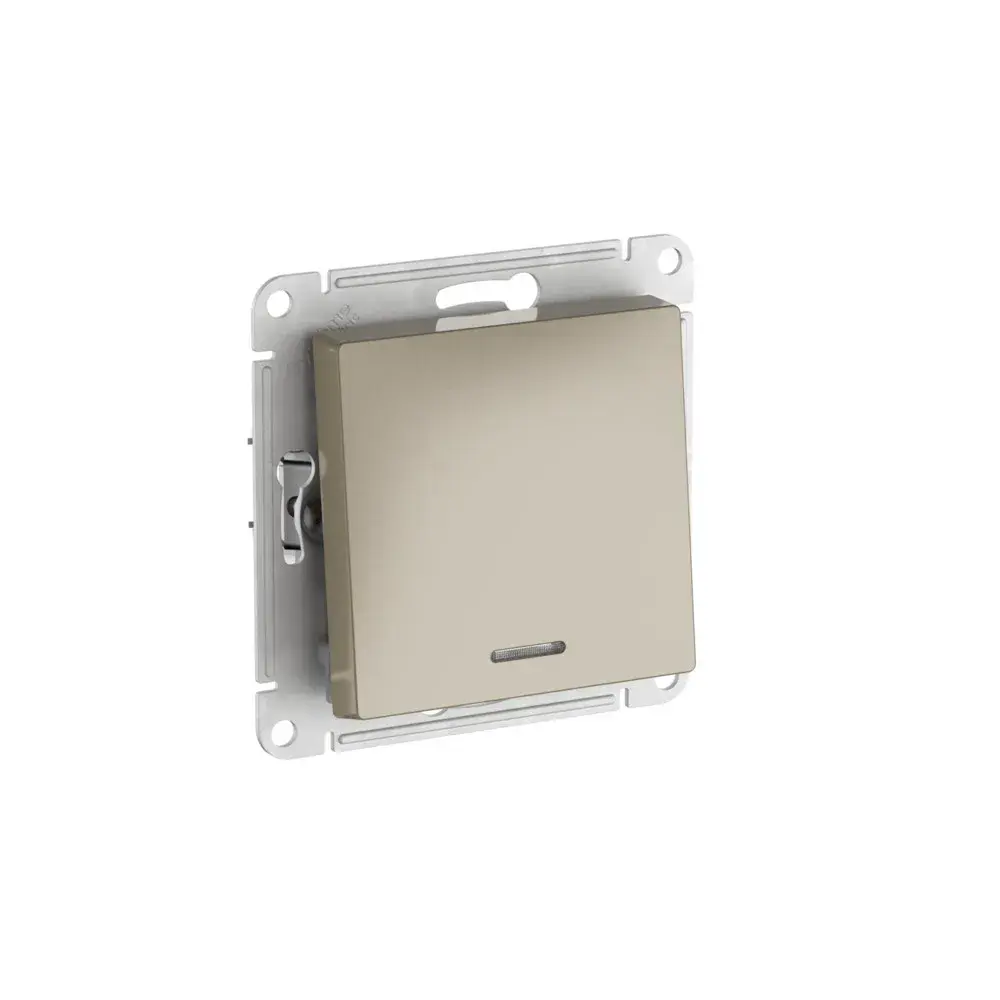 Механизм с быстрозажимными клеммами 1-клавишного выключателя с подсветкой Systeme Electric (ранее Schneider Electric) серии AtlasDesign в цвете шампань подходит для сетей 250 В, на ток 10 А. С помощью новых быстрозажимных клемм монтаж розеток и выключателей стал намного быстрее. Теперь подключение не требует использования отвертки. Лицевые детали из качественного ABS-пластика, устойчивого к царапинам и УФ-излучению.
