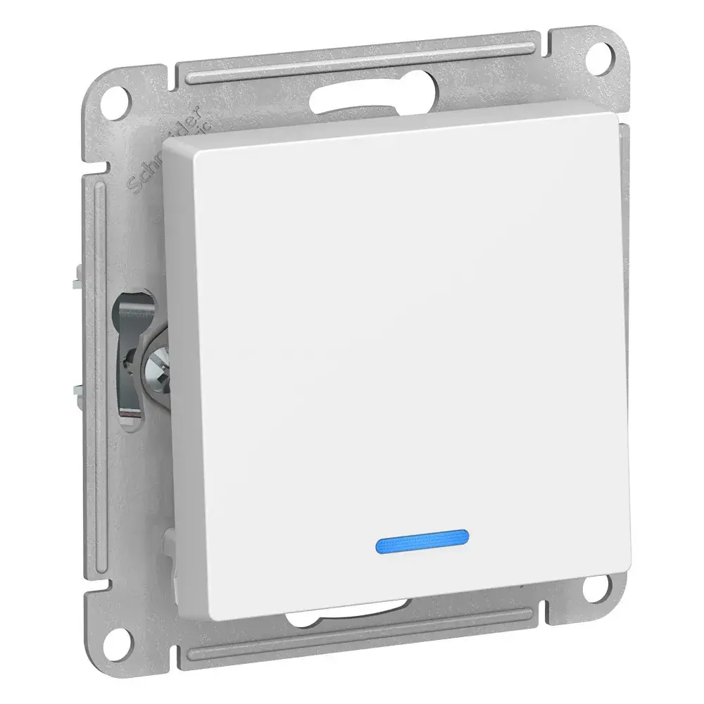 Механизм выключателя 1-клавишного с подсветкой Systeme Electric (ранее Schneider Electric) серии AtlasDesign в цвете белый подходит для сетей 250 В, на ток 10 А. - Пластик с ионами серебра в белом цвете обеспечивает антибактериальный эффект. - Благодаря светодиодной подсветке синего цвета изделие легко найти в темноте. - Лицевые детали из качественного ABS-пластика, устойчивого к царапинам и УФ-излучению. - Усиленные прямые монтажные лапки для лучшей фиксации механизма в монтажной коробке.