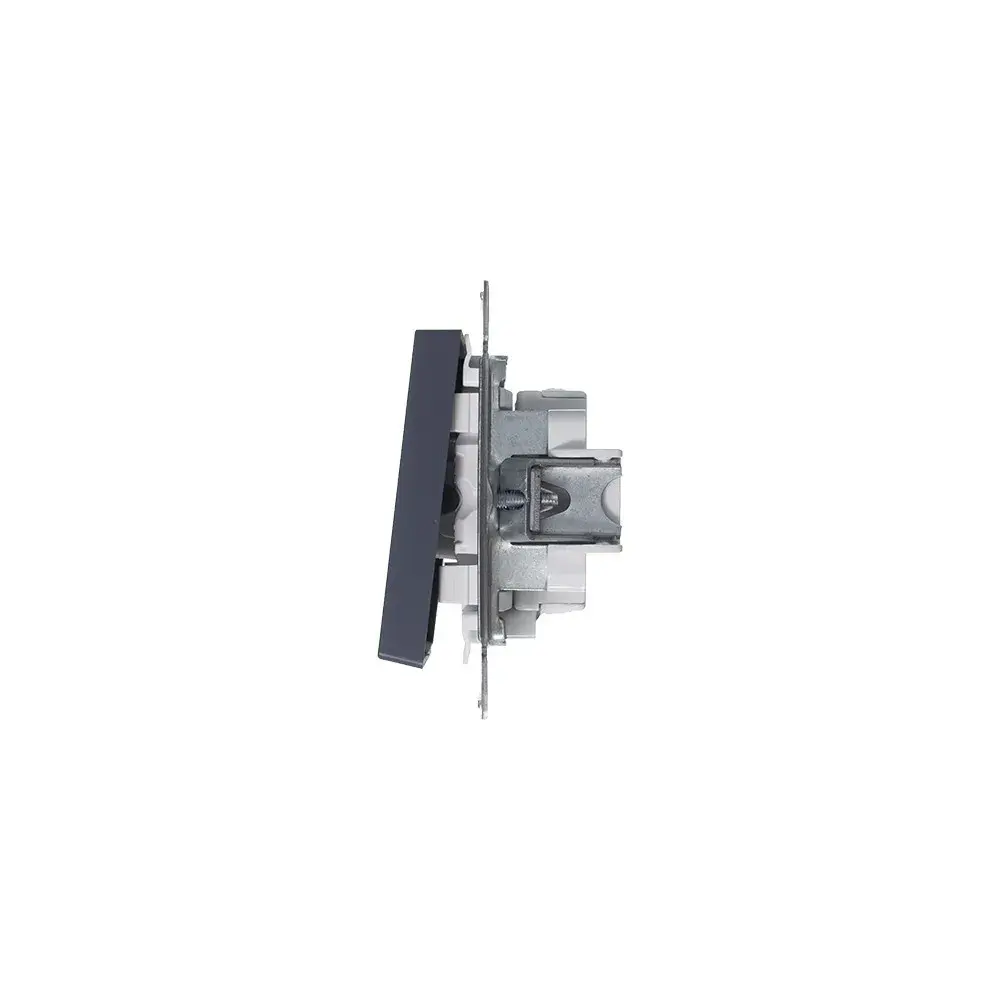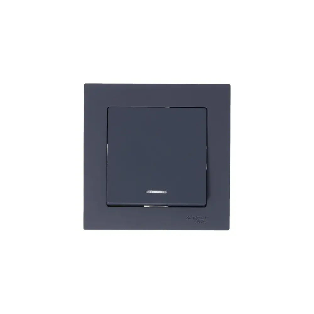 Механизм выключателя 1-клавишного с подсветкой Systeme Electric (ранее Schneider Electric) серии AtlasDesign в цвете грифель подходит для сетей 250 В, на ток 10 А. - Благодаря светодиодной подсветке синего цвета изделие легко найти в темноте. - Лицевые детали из качественного ABS-пластика, устойчивого к царапинам и УФ-излучению. - Усиленные прямые монтажные лапки для лучшей фиксации механизма в монтажной коробке.