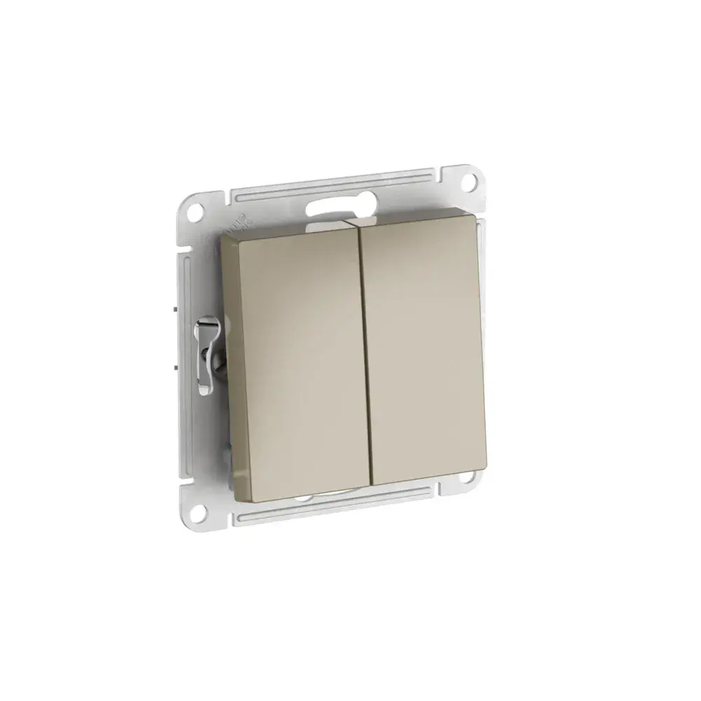 Механизм с быстрозажимными клеммами Systeme Electric (ранее Schneider Electric) серии AtlasDesign в цвете шампань 2-клавишного переключателя подходит для сетей 250 В, на ток 10 А. С помощью новых быстрозажимных клемм монтаж розеток и выключателей стал намного быстрее. Теперь подключение не требует использования отвертки. Лицевые детали из качественного ABS-пластика, устойчивого к царапинам и УФ-излучению.