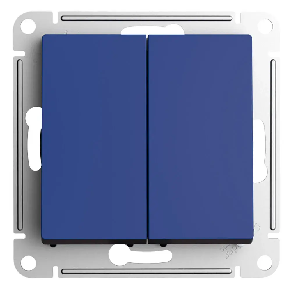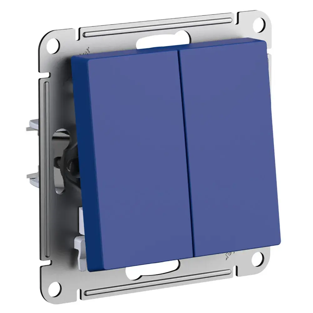 Механизм Systeme Electric (ранее Schneider Electric) серии AtlasDesign в цвете аквамарин переключателя 2-клавишного подходит для сетей 250 В, на ток 10 А. - Переключатель позволяют управлять одним источником света с двух точек. - Лицевые детали из качественного ABS-пластика, устойчивого к царапинам и УФ-излучению. - Усиленные прямые монтажные лапки для лучшей фиксации механизма в монтажной коробке.