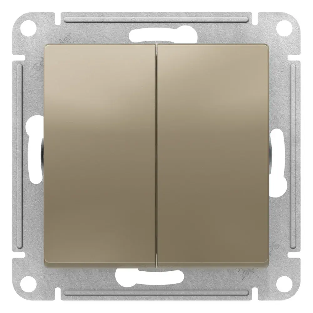 Механизм Systeme Electric (ранее Schneider Electric) серии AtlasDesign в цвете шампань переключателя 2-клавишного перекрёстного подходит для сетей 250 В, на ток 10 А. Лицевые детали из качественного ABS-пластика, устойчивого к царапинам и УФ-излучению. Усиленные прямые монтажные лапки для лучшей фиксации механизма в монтажной коробке.