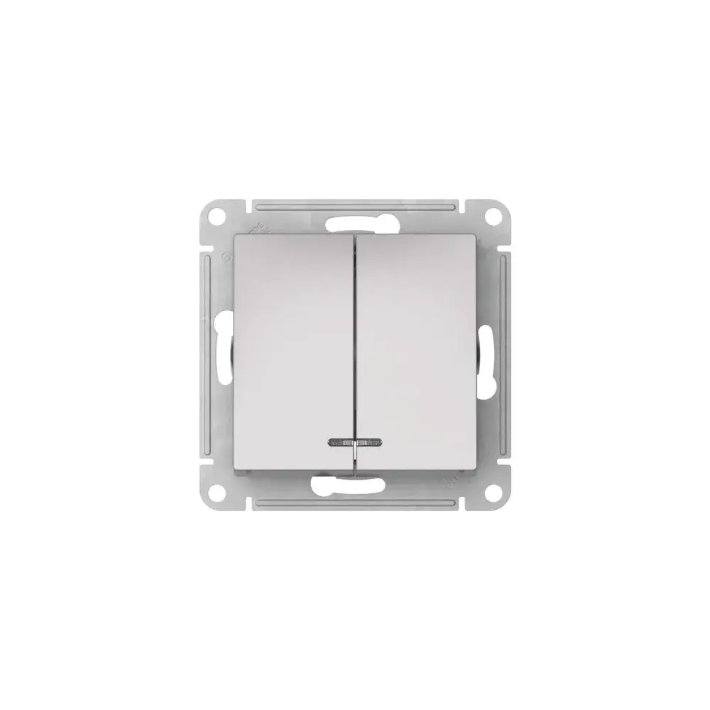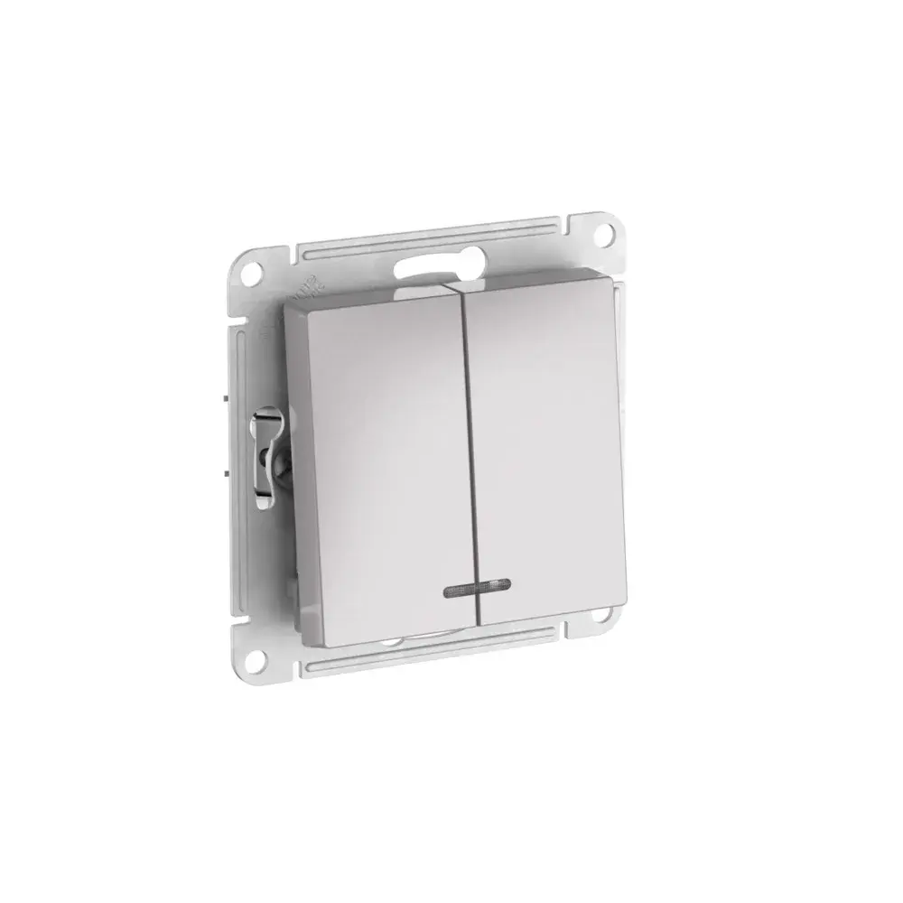 <div class="_truncate" data-v-566031d2><p>Механизм с быстрозажимными клеммами Systeme Electric (ранее Schneider Electric) серии AtlasDesign в цвете алюминий 2-клавишного выключателя с подсветкой подходит для сетей 250 В, на ток 10 А. С помощью новых быстрозажимных клемм монтаж розеток и выключателей стал намного быстрее. Теперь подключение не требует использования отвертки.