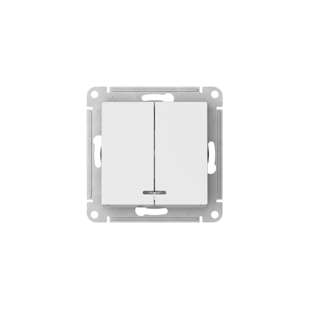 Механизм с быстрозажимными клеммами Systeme Electric (ранее Schneider Electric) серии AtlasDesign в цвете белый выключателя 2-клавишного с подсветкой подходит для сетей 250 В, на ток 10 А. С помощью новых быстрозажимных клемм монтаж розеток и выключателей стал намного быстрее. Теперь подключение не требует использования отвертки. Пластик с ионами серебра в белом цвете обеспечивает антибактериальный эффект. Лицевые детали из качественного ABS-пластика, устойчивого к царапинам и УФ-излучению.