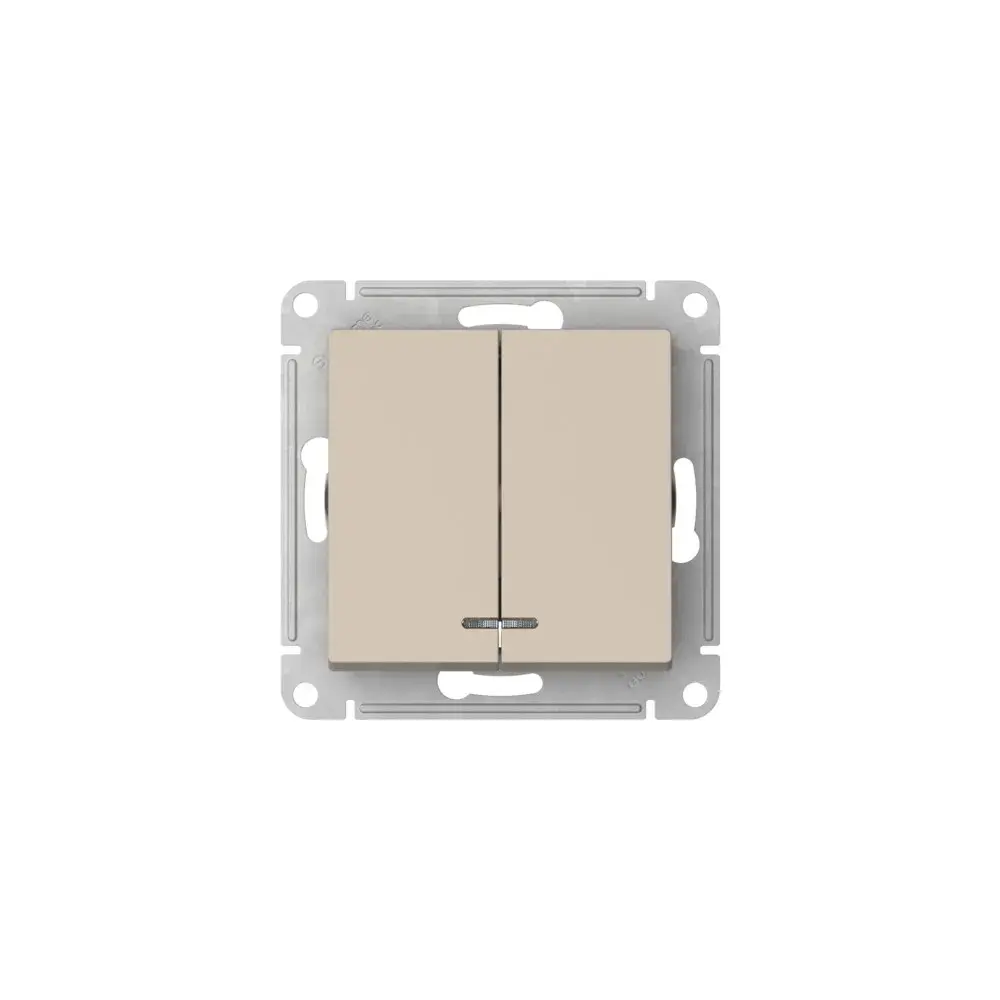 <div class="_truncate" data-v-566031d2><p>Механизм с быстрозажимными клеммами Systeme Electric (ранее Schneider Electric) серии AtlasDesign в цвете песочный 2-клавишного выключателя с подсветкой подходит для сетей 250 В, на ток 10 А. С помощью новых быстрозажимных клемм монтаж розеток и выключателей стал намного быстрее. Теперь подключение не требует использования отвертки.