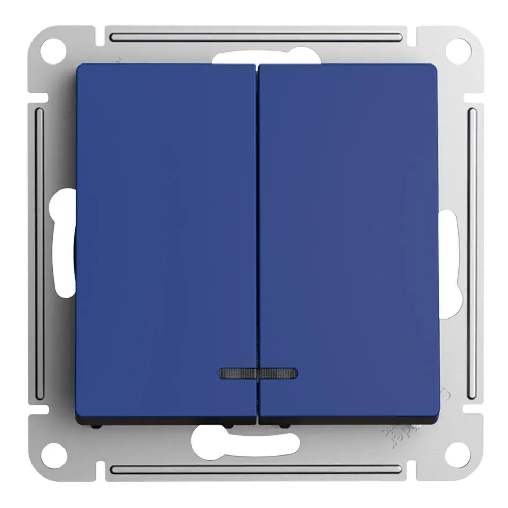 Механизм Systeme Electric (ранее Schneider Electric) серии AtlasDesign в цвете аквамарин выключателя 2-клавишного c подсветкой подходит для сетей 250 В, на ток 10 А. - Благодаря светодиодной подсветке синего цвета изделие легко найти в темноте. - Двухклавишный выключатель позволяет управлять двумя источниками света с одной точки. - Лицевые детали из качественного ABS-пластика, устойчивого к царапинам и УФ-излучению. - Усиленные прямые монтажные лапки для лучшей фиксации механизма в монтажной коробке.